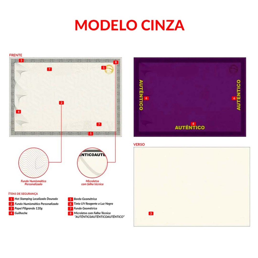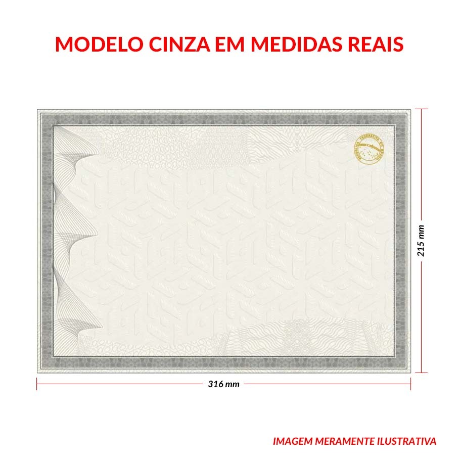 Diploma em Papel Moeda Cinza c/ Brasão Hot Stamping Dourado 5 Folhas