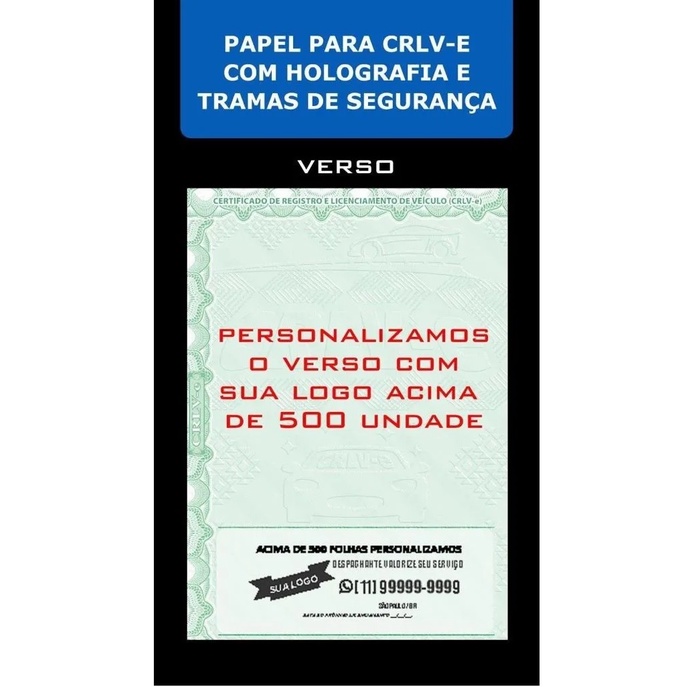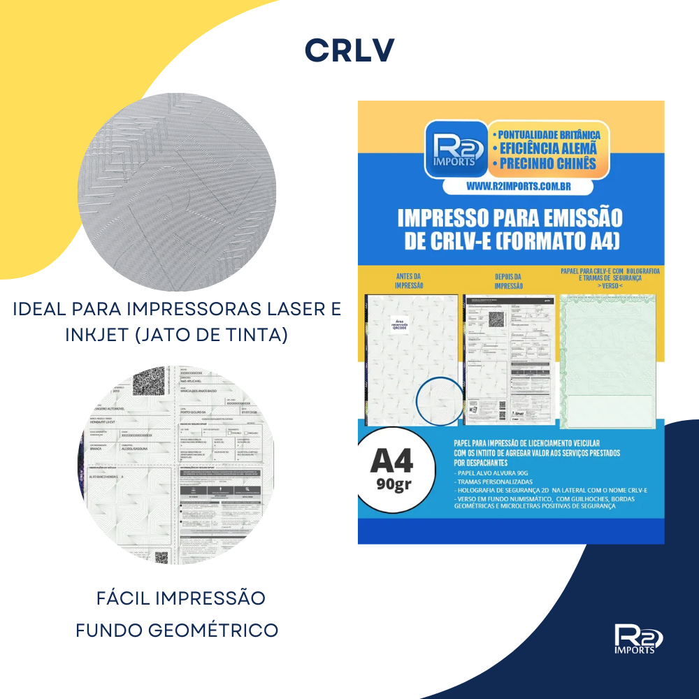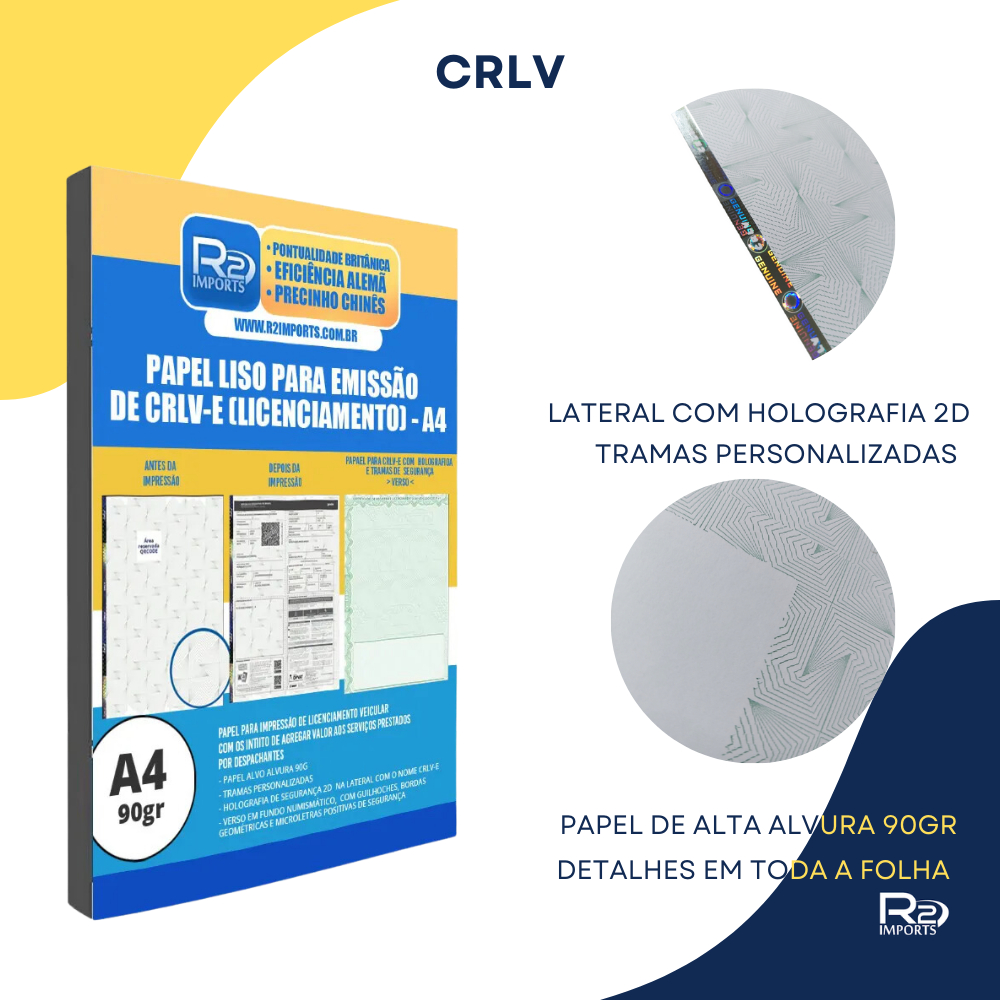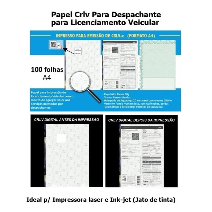 Papel Crlv para Despachante para Licenciamento Veicular A4 - 100 Folhas