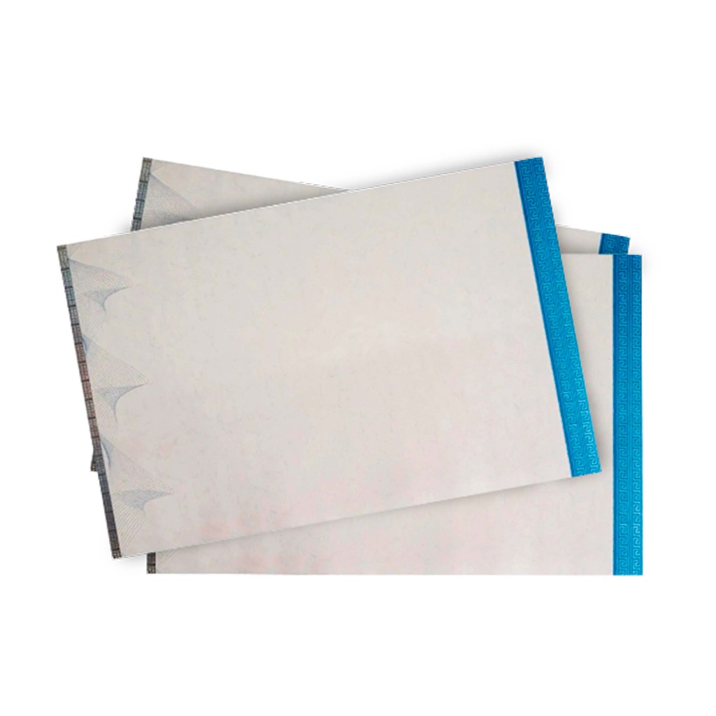 Certificado em Papel Moeda Azul c/ Holografia Prata - 120gr