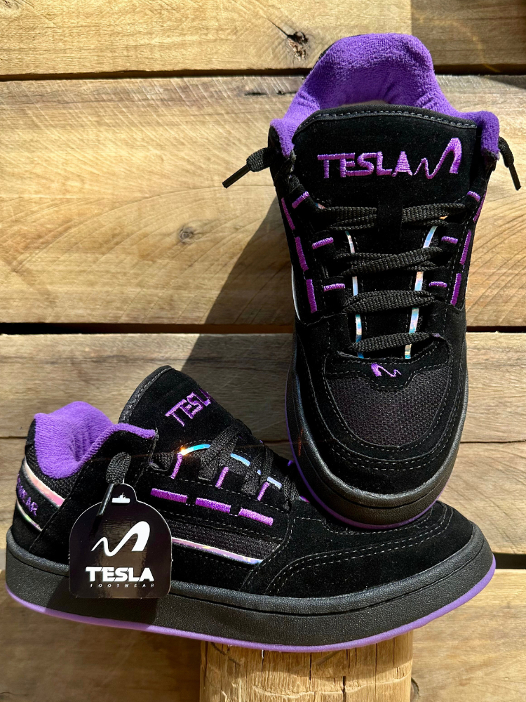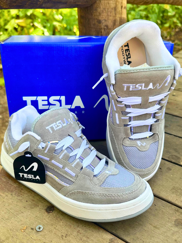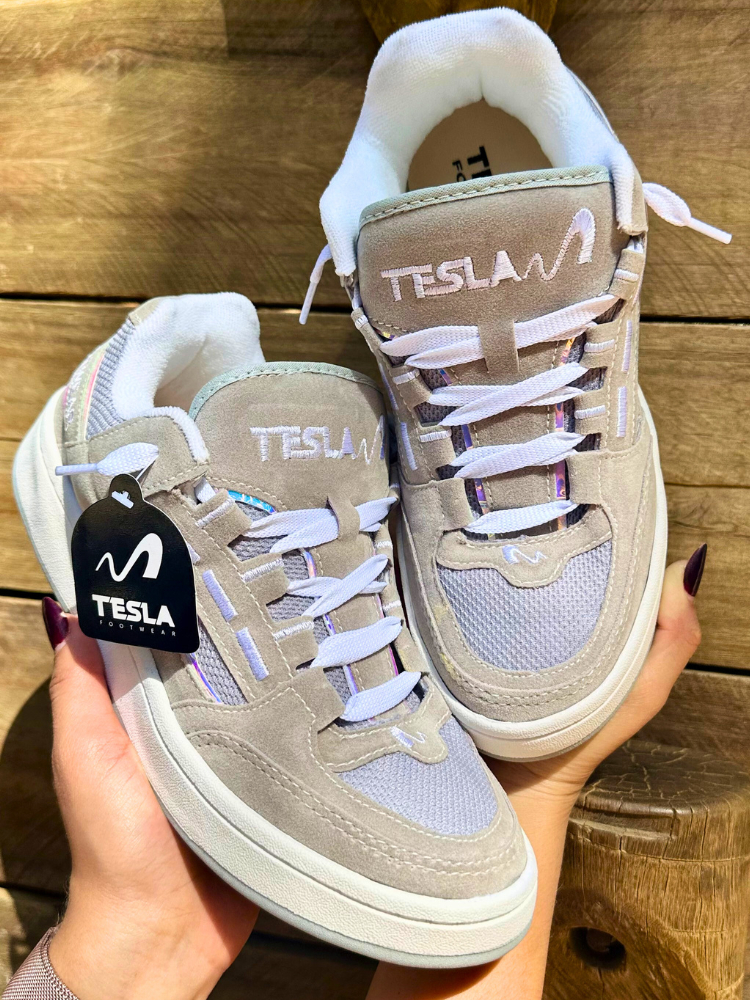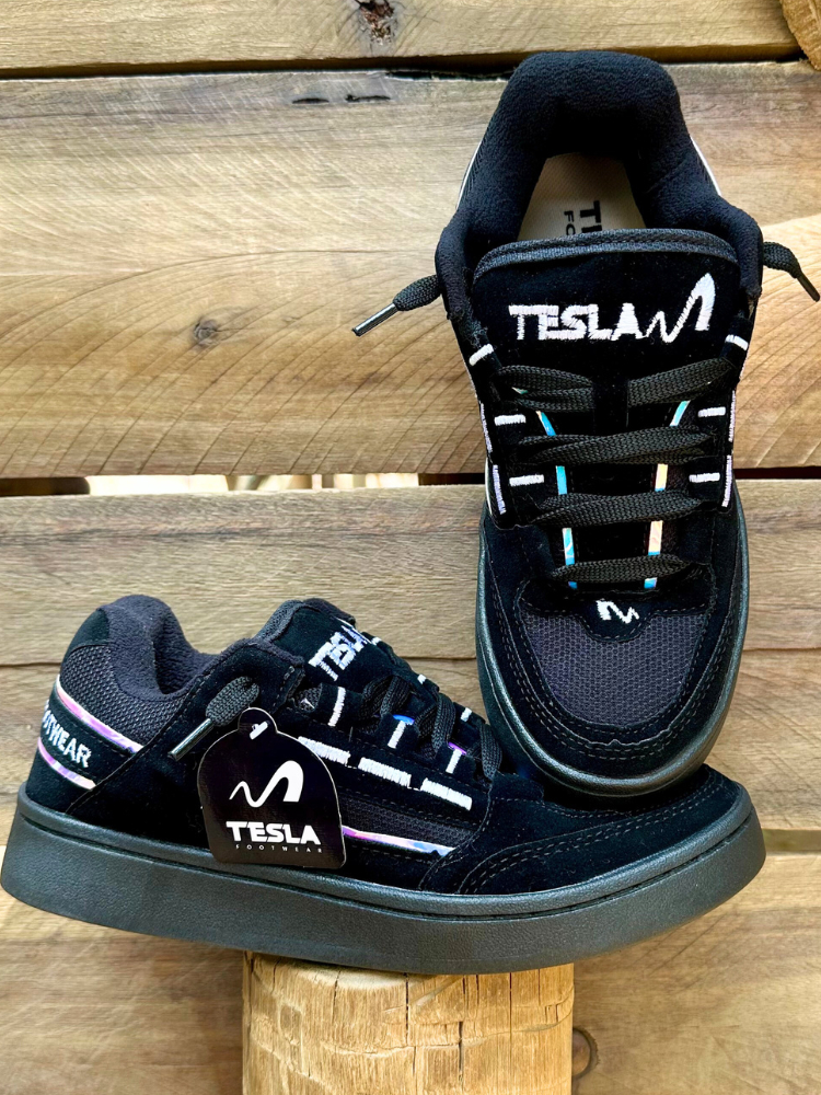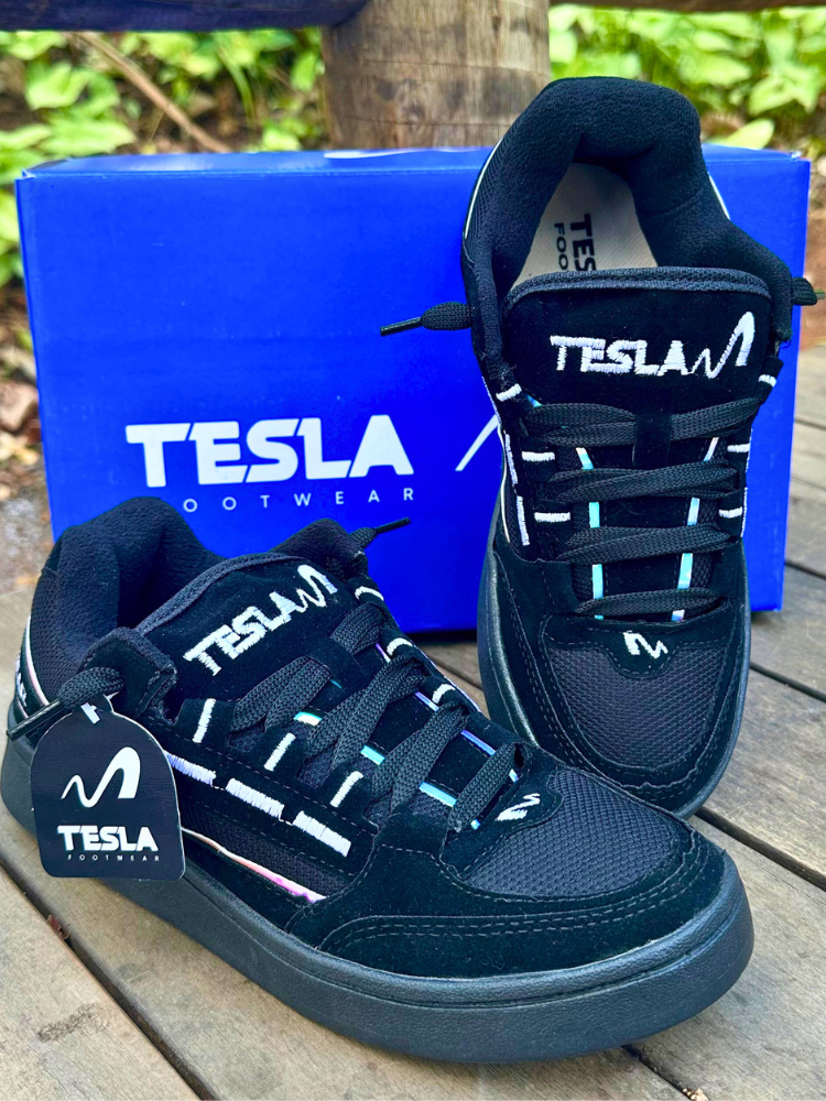 Tênis Tesla Coil Black White Casual Reflect Bordado Camurça Premium Esportivo