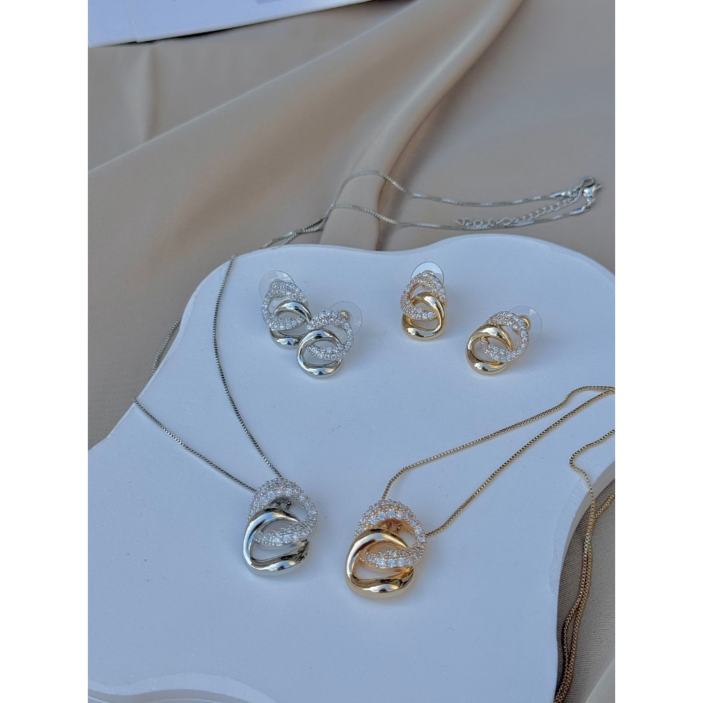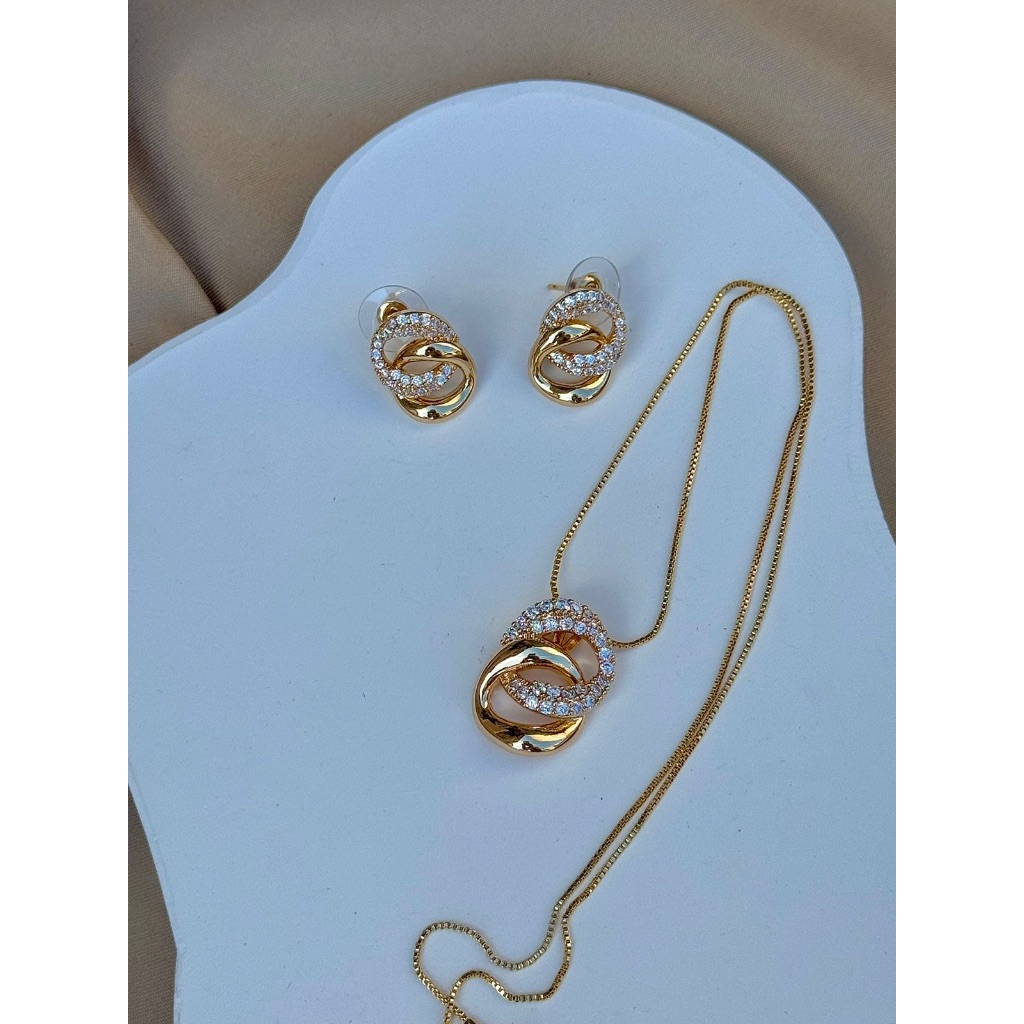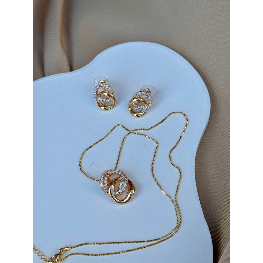 Kit Brinco e Colar Zirconia Banho Verniz Modelo Moda Presente Dia Das Maes