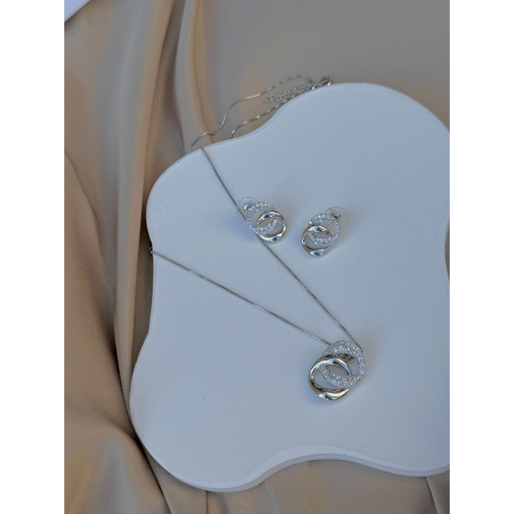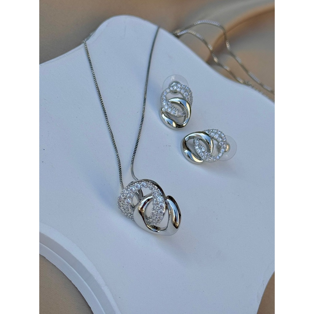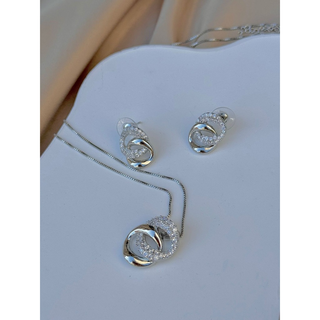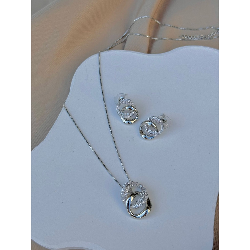 Kit Brinco e Colar Zirconia Banho Verniz Modelo Moda Presente Dia Das Maes