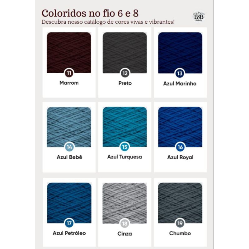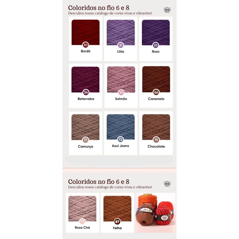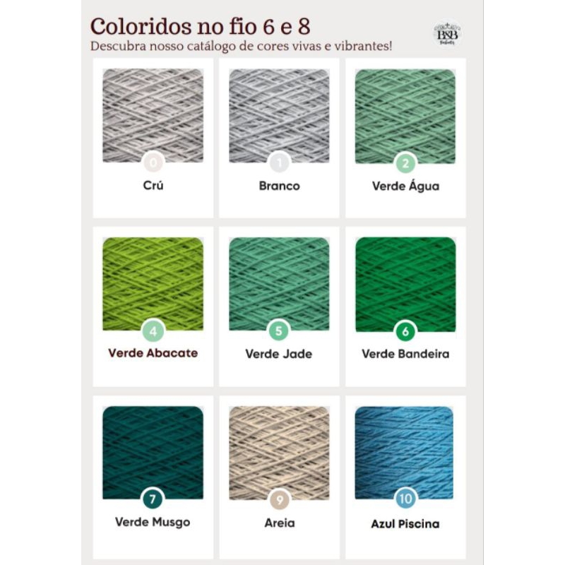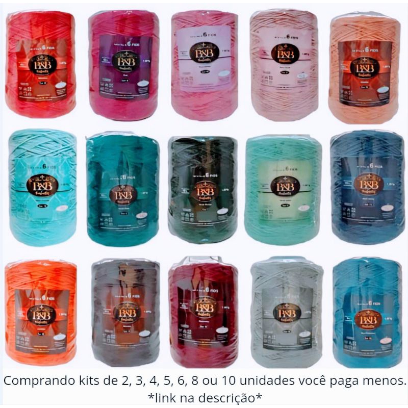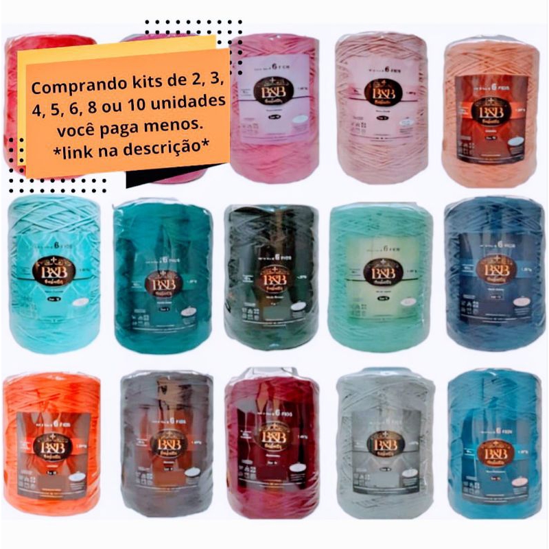 Barbante B&B fio 8 com 1 kg, cores vivas, crochê, fio 85% algodão, fio macio.