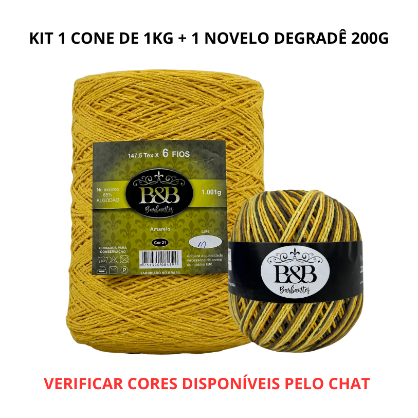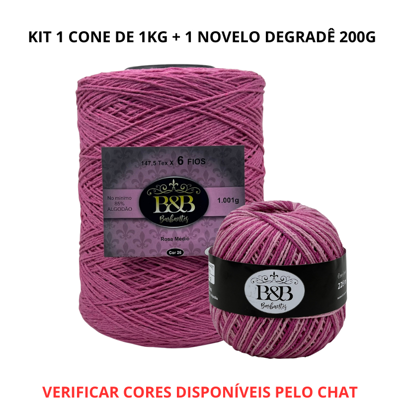 KIT 1 Barbante B&B 1KG/ 6 ou 8 fios + 1 novelo Degradê 200 gramas