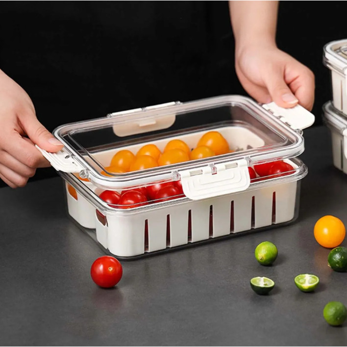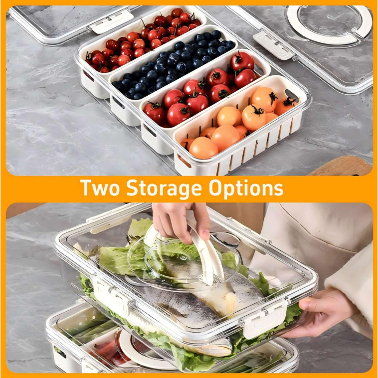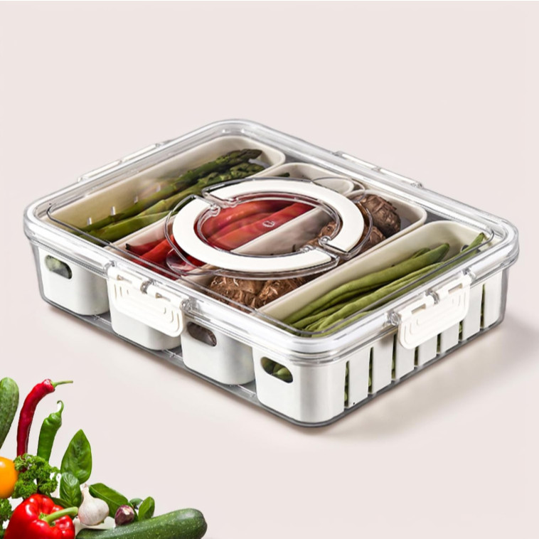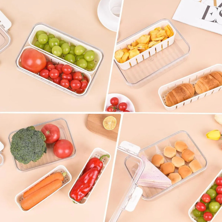 Kit Organizador de Geladeira Alimentos Vegetais com Divisórias Removíveis e Design de Vedação