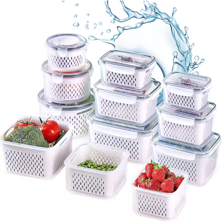 Kit 3 Organizadores Geladeira 850ML/1750ML/3300ML Alimentos Vegetais