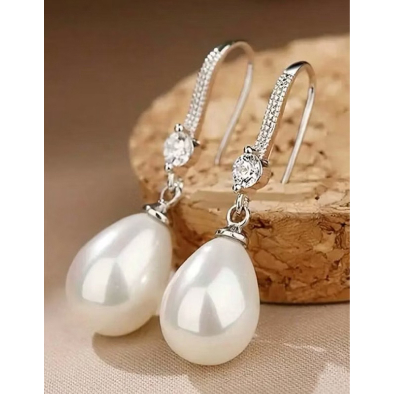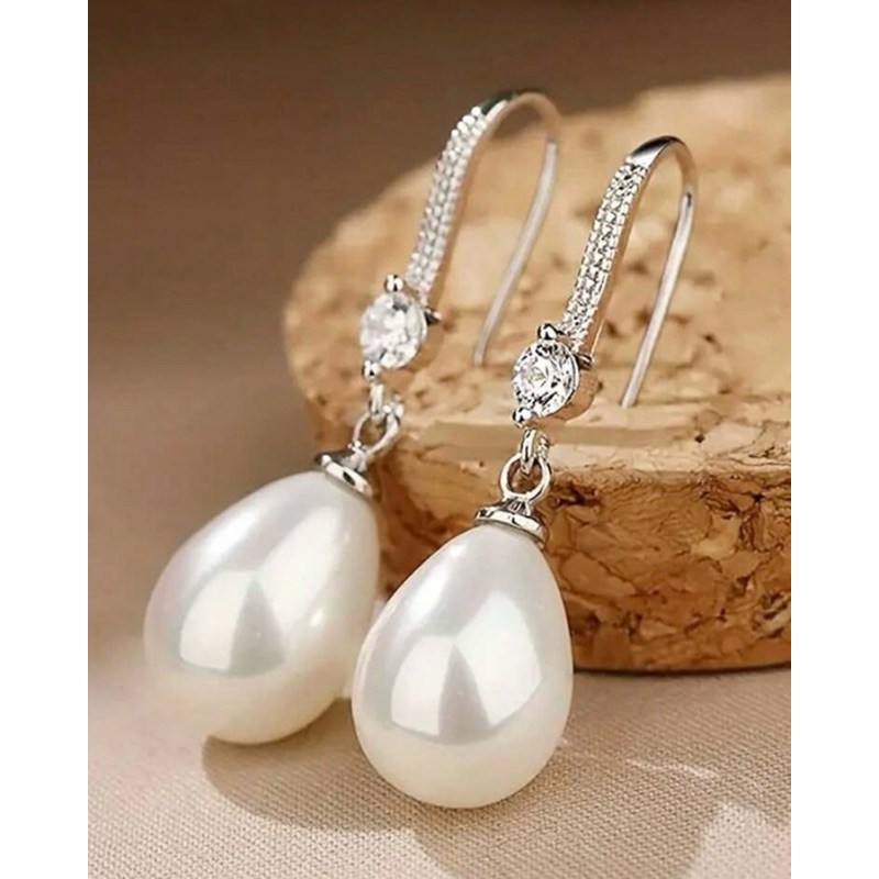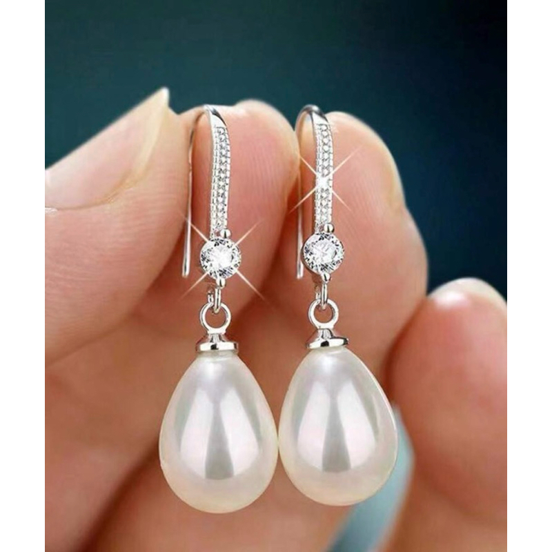 Brincos De Noiva Gota Prata Acessórios De Festa De Alta Qualidade, Brincos de Pingente de Pérola com Zircônia Brilhante