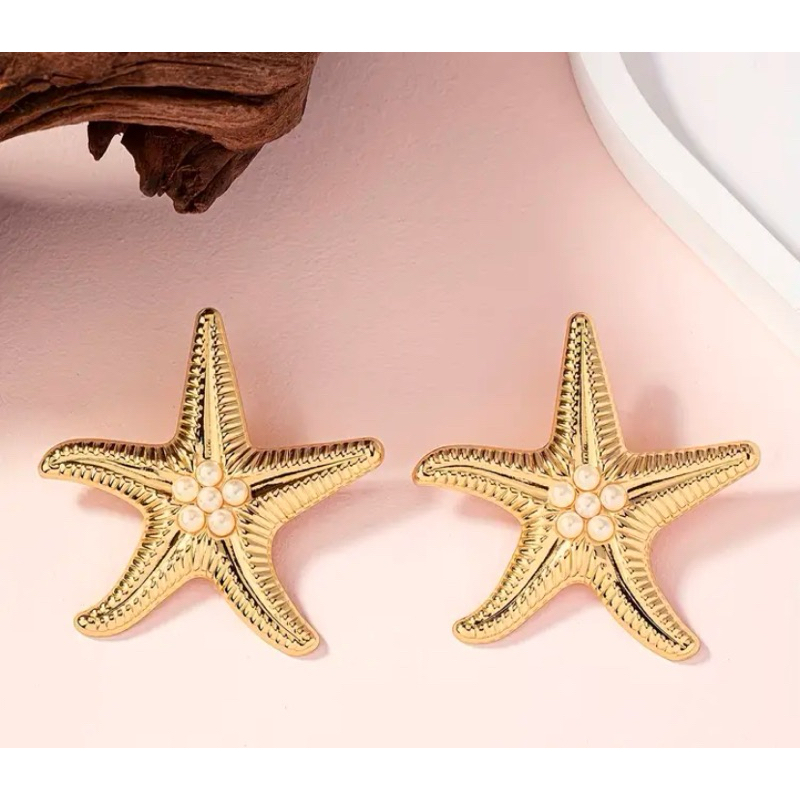 Colar e Brincos Estrela do Mar para Mulheres - Conjunto de Bijus para Férias, Festas e Passeios na Praia - verão