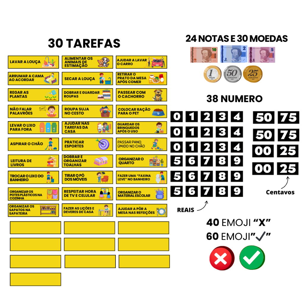 Quadro de Conquista e Mesada Infantil para Geladeira – Organização, Incentivo e Educação Financeira Diaria