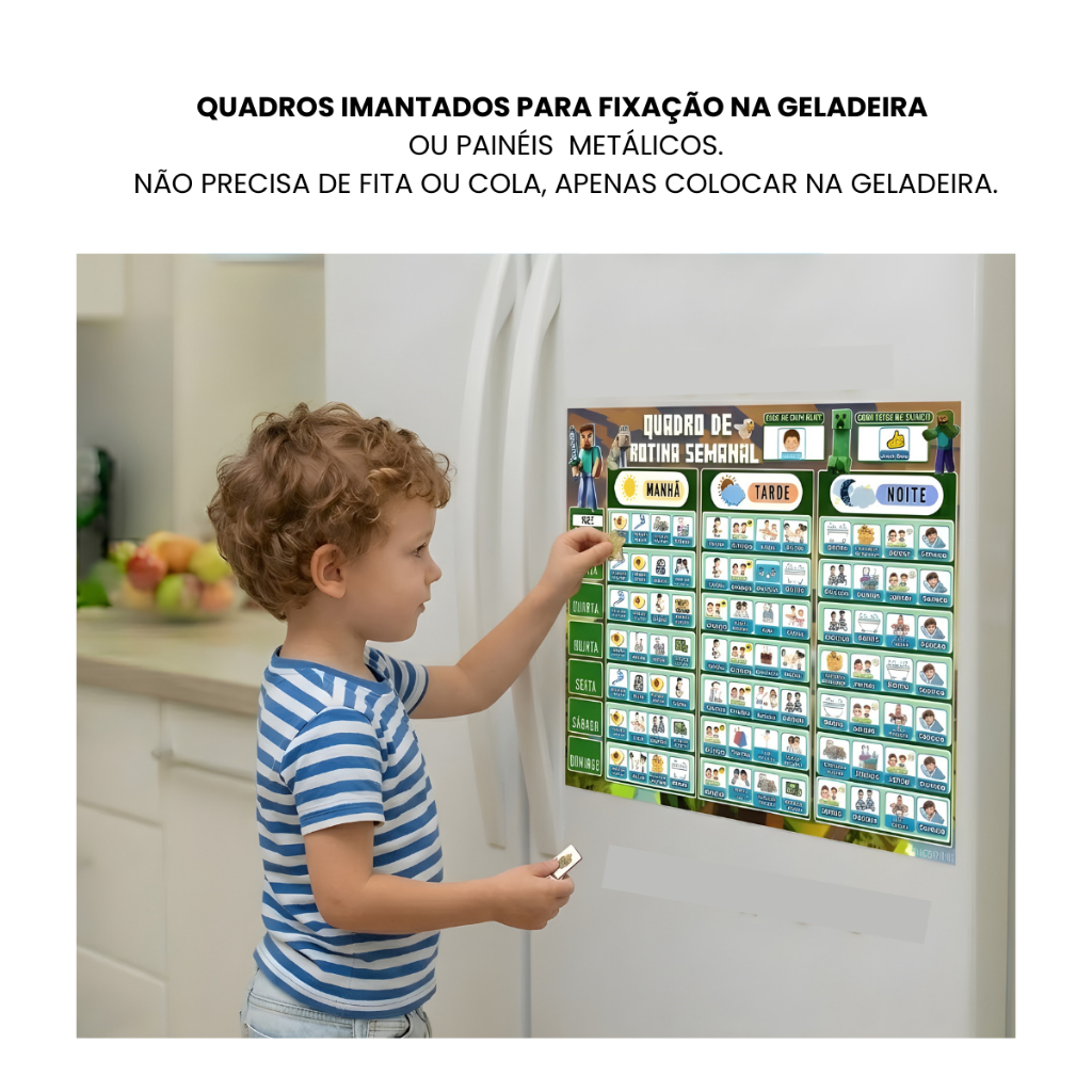 Quadro de Rotina Semanal Infantil Educativo Para Organização da Semana Tema Minecraft