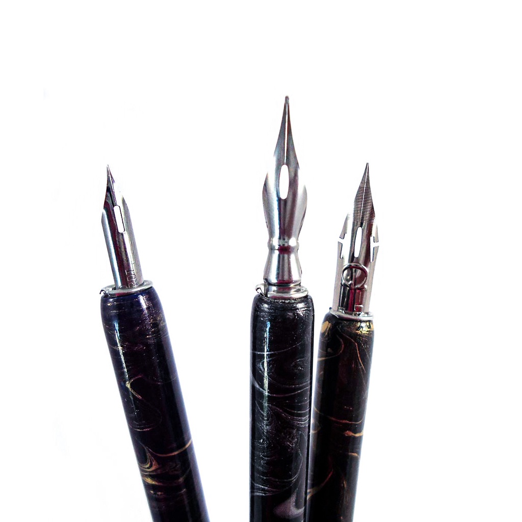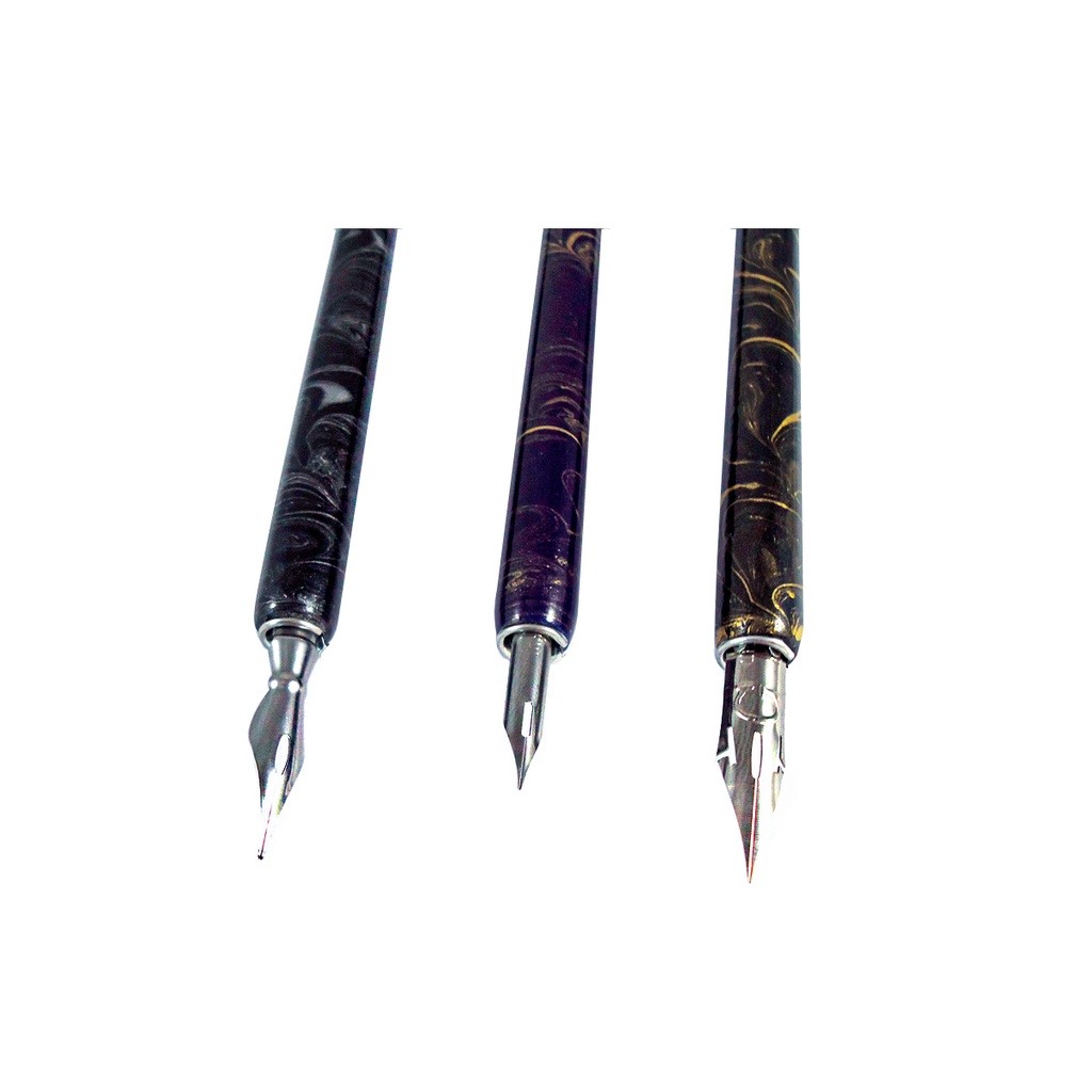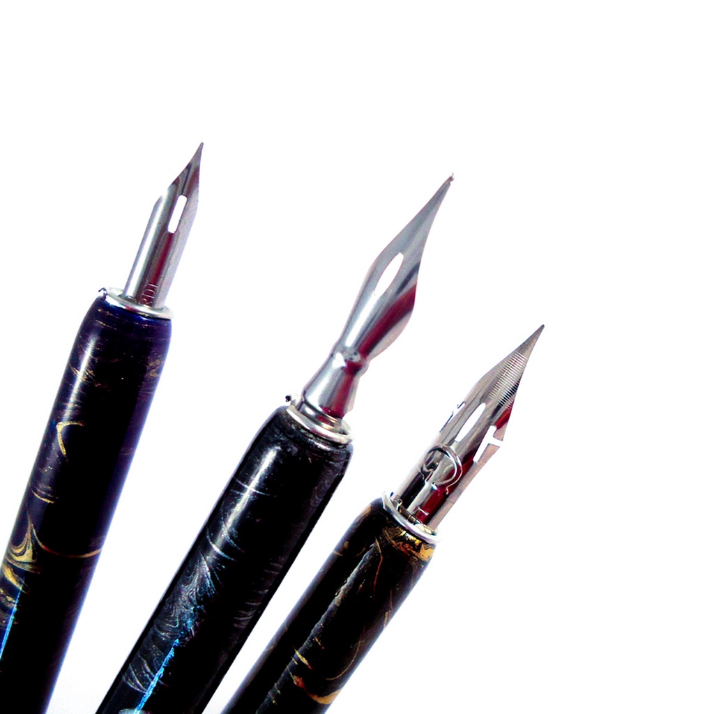 Kit Caneta Bico de Pena Para Desenho Cabo Madeira C/3 Keramik