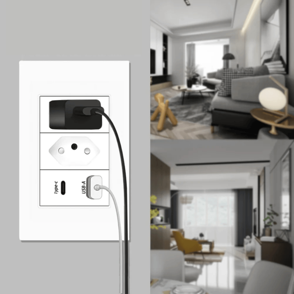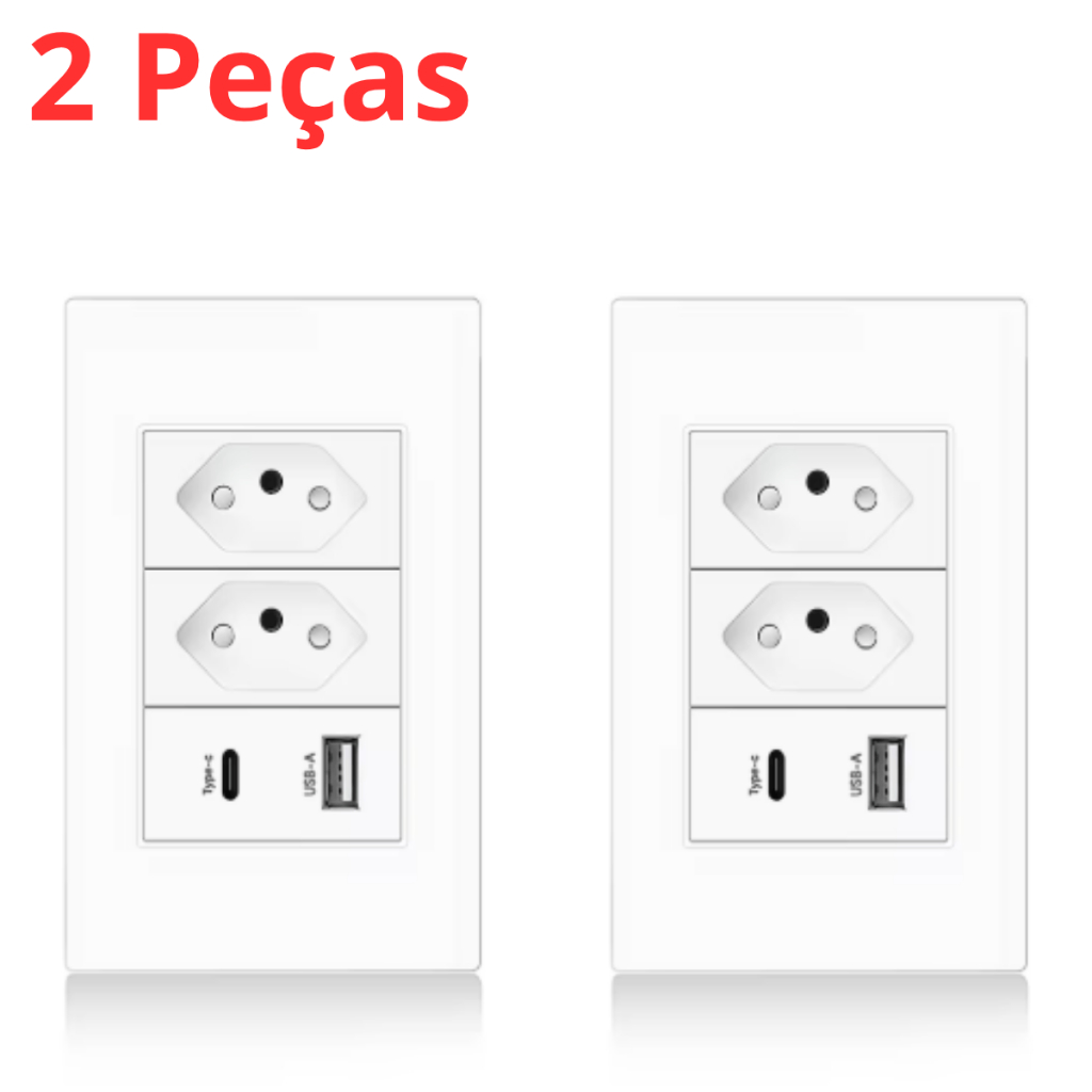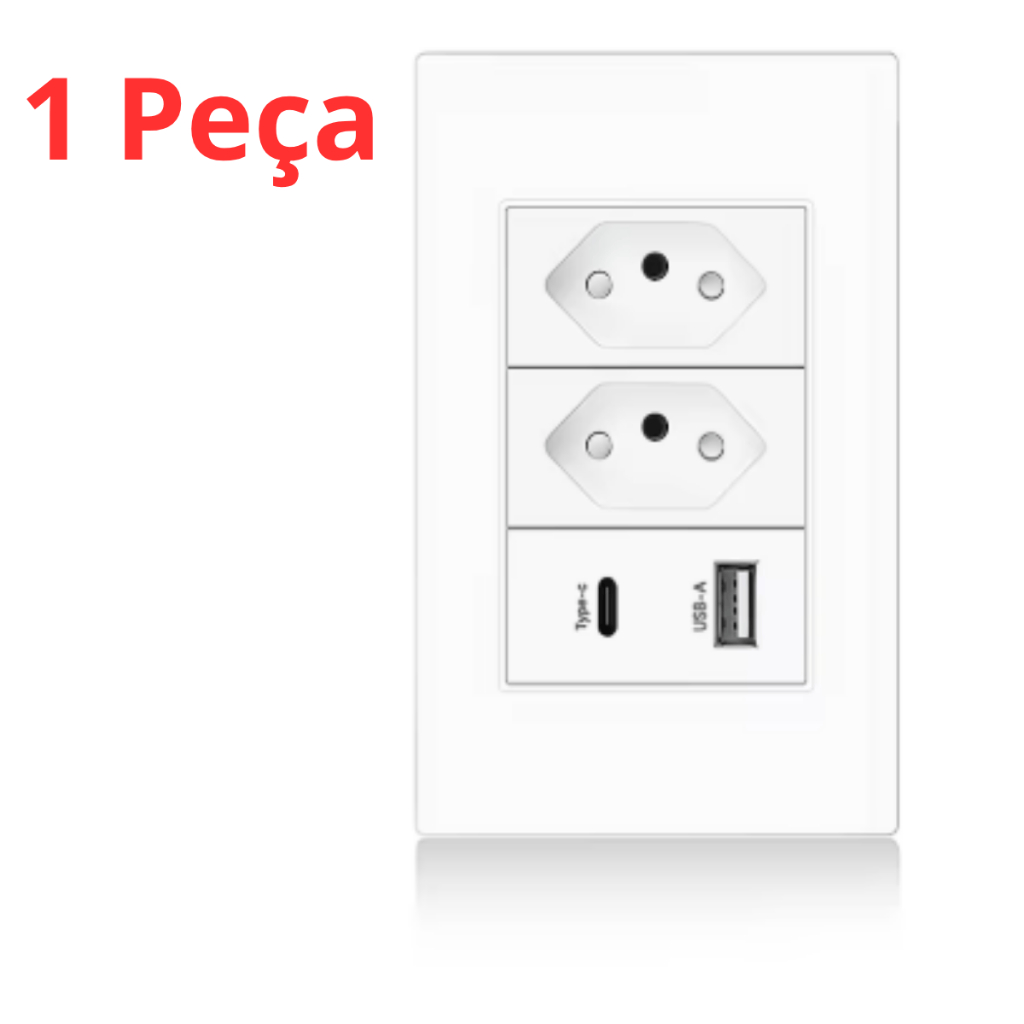 Tomada de Parede Dupla Com Entrada Usb e tipo C 5V Bivolt 4/1 Carregamento Rápido Multi Carregamento