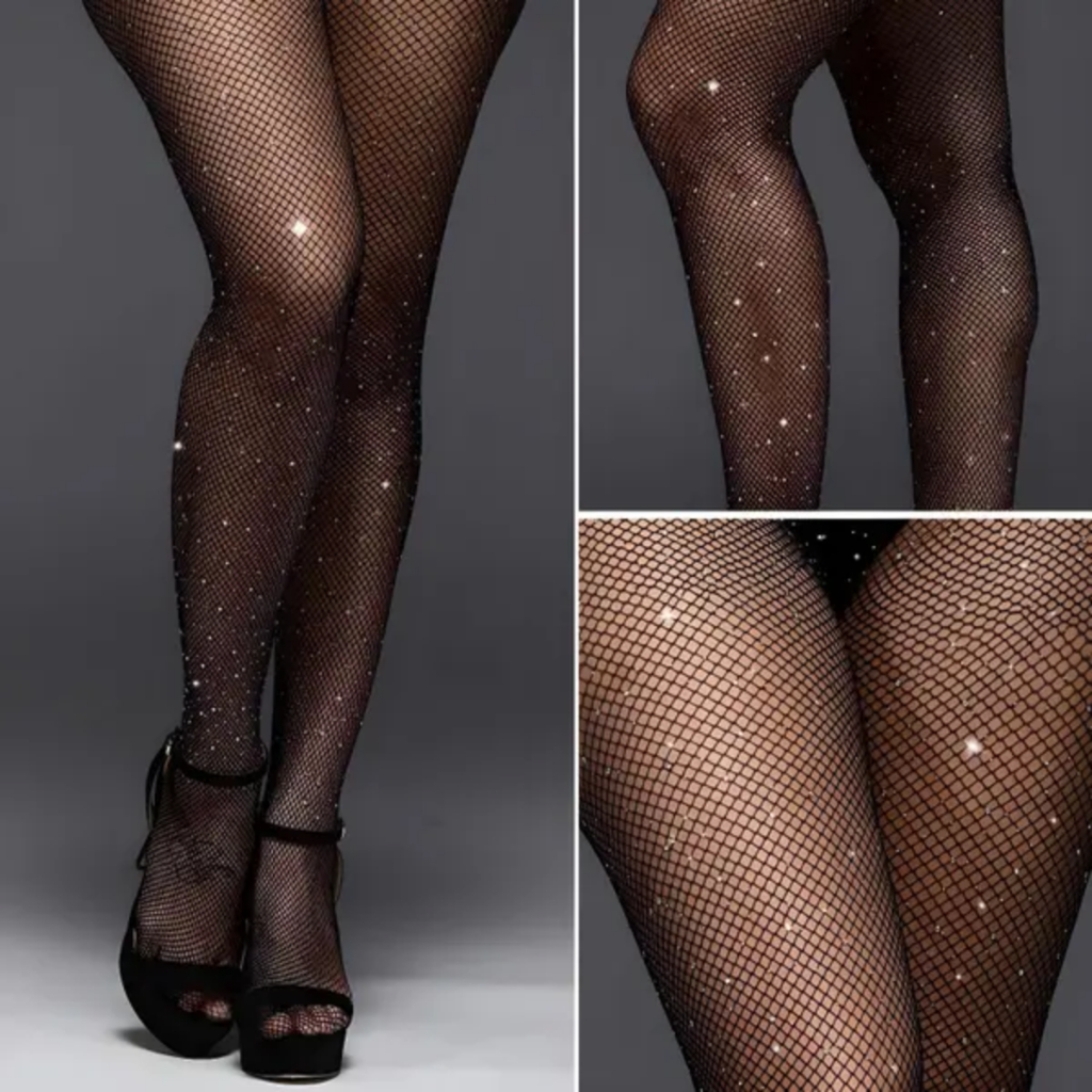Meia Calça Arrastão Strass Brilho Preta Trama Pequena Tamanho Único 36 ao 44