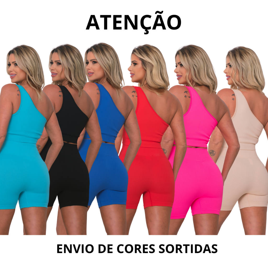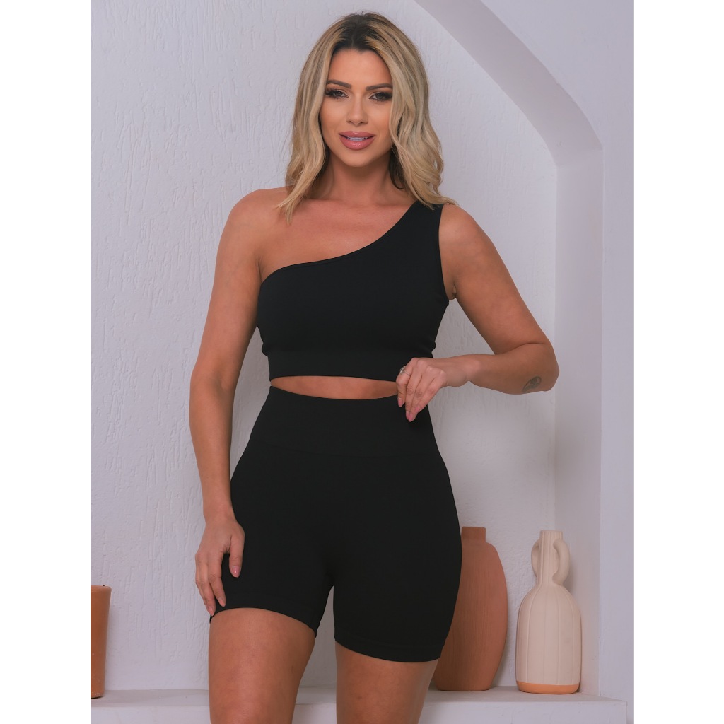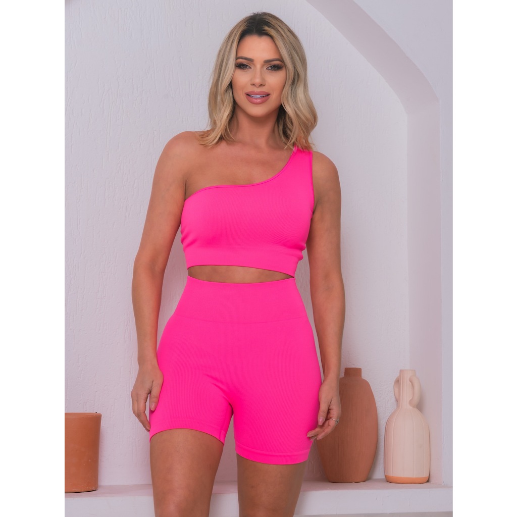 Conjunto Academia Feminino Short e Top Fitness Cintura Alta Suplex Básico Fitness Bumbum