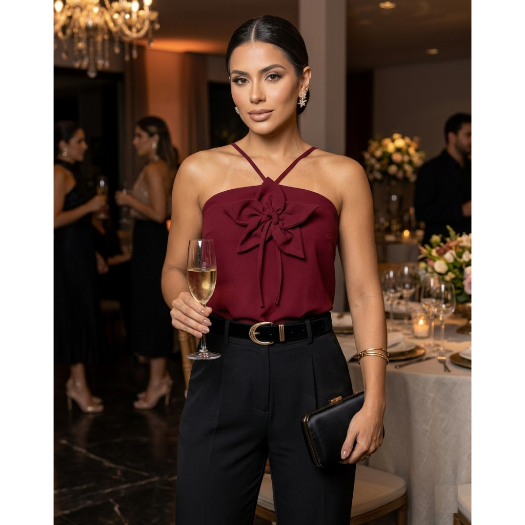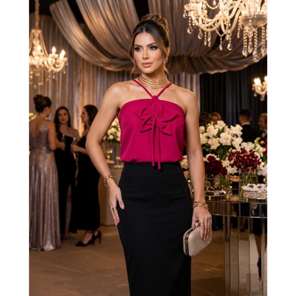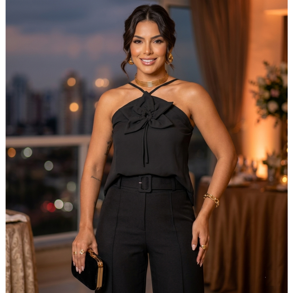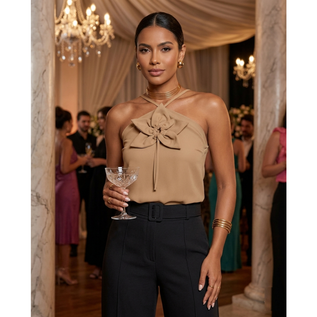 Blusa Soltinha Feminina Com Aplicação De Flor Alça Social Bata