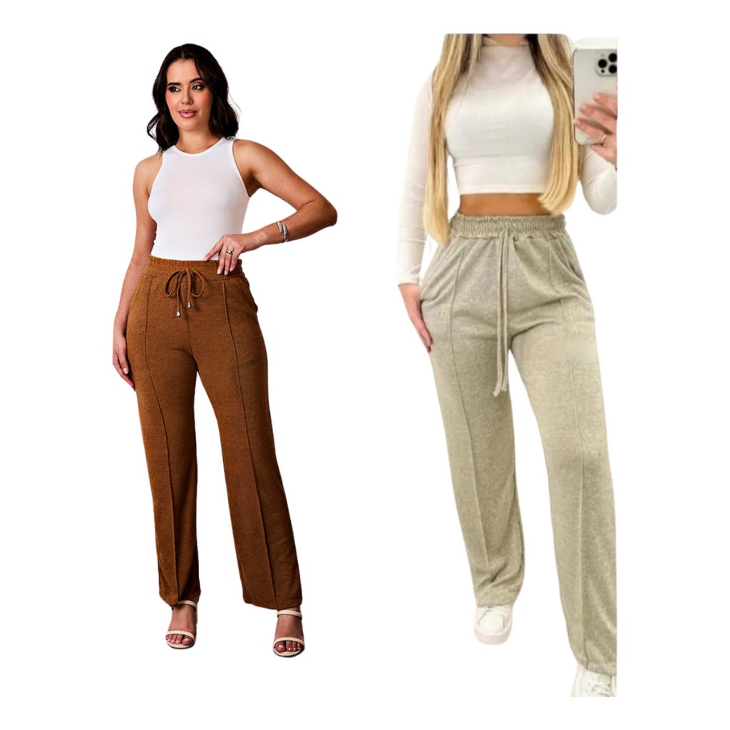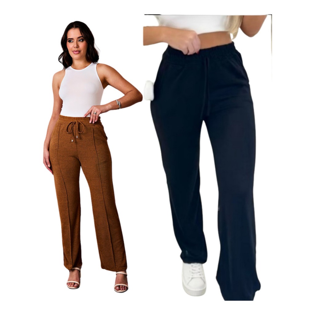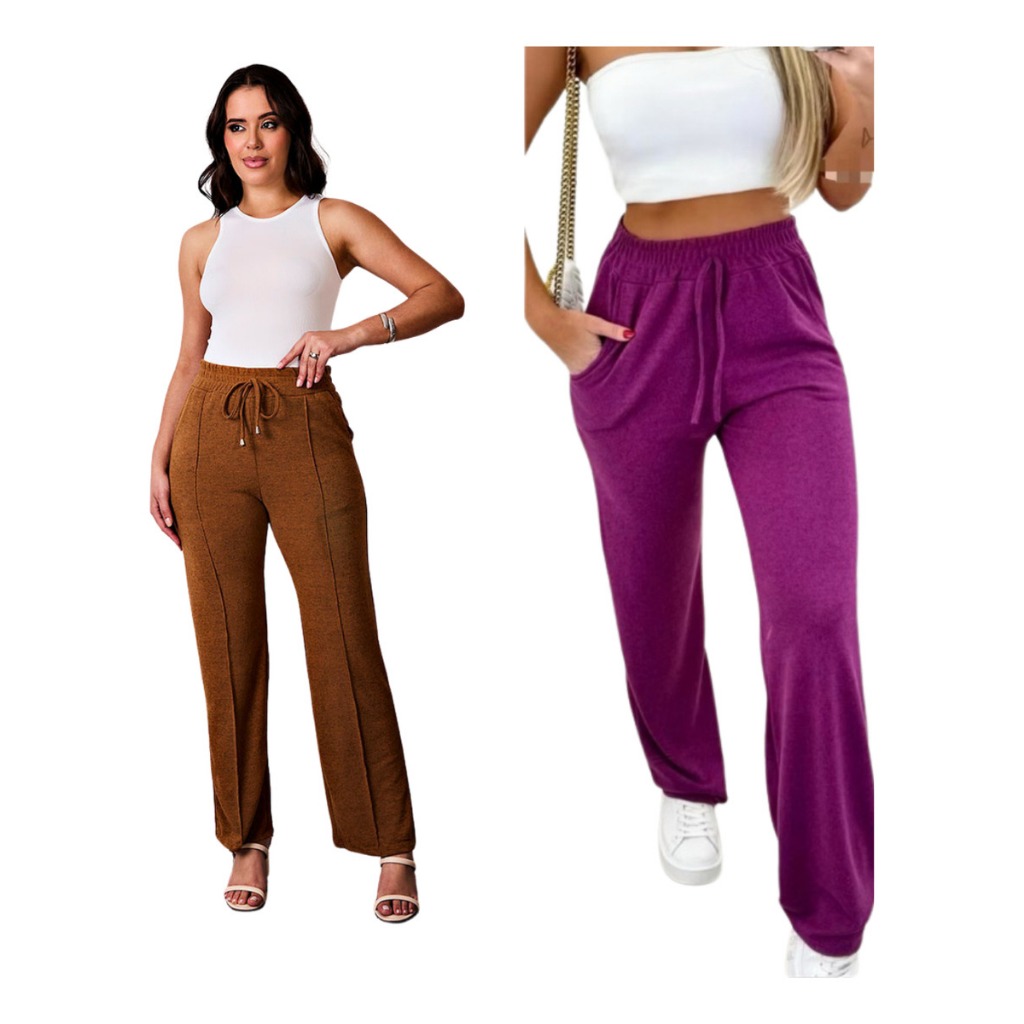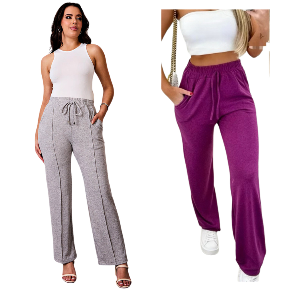 kit 2 Calça grossa Pantalona de Lã Lanzinha boca larga Confortável Calça Feminina dia a dia