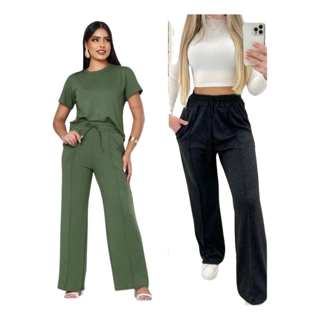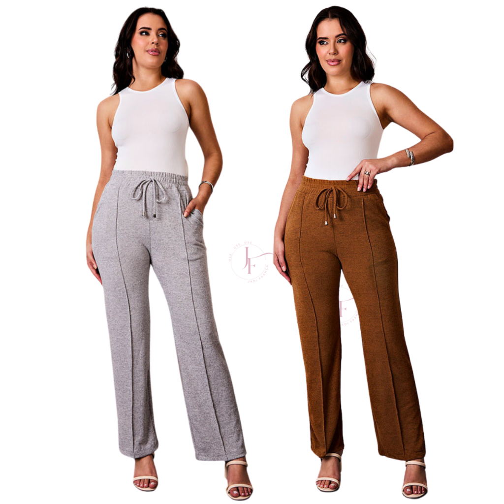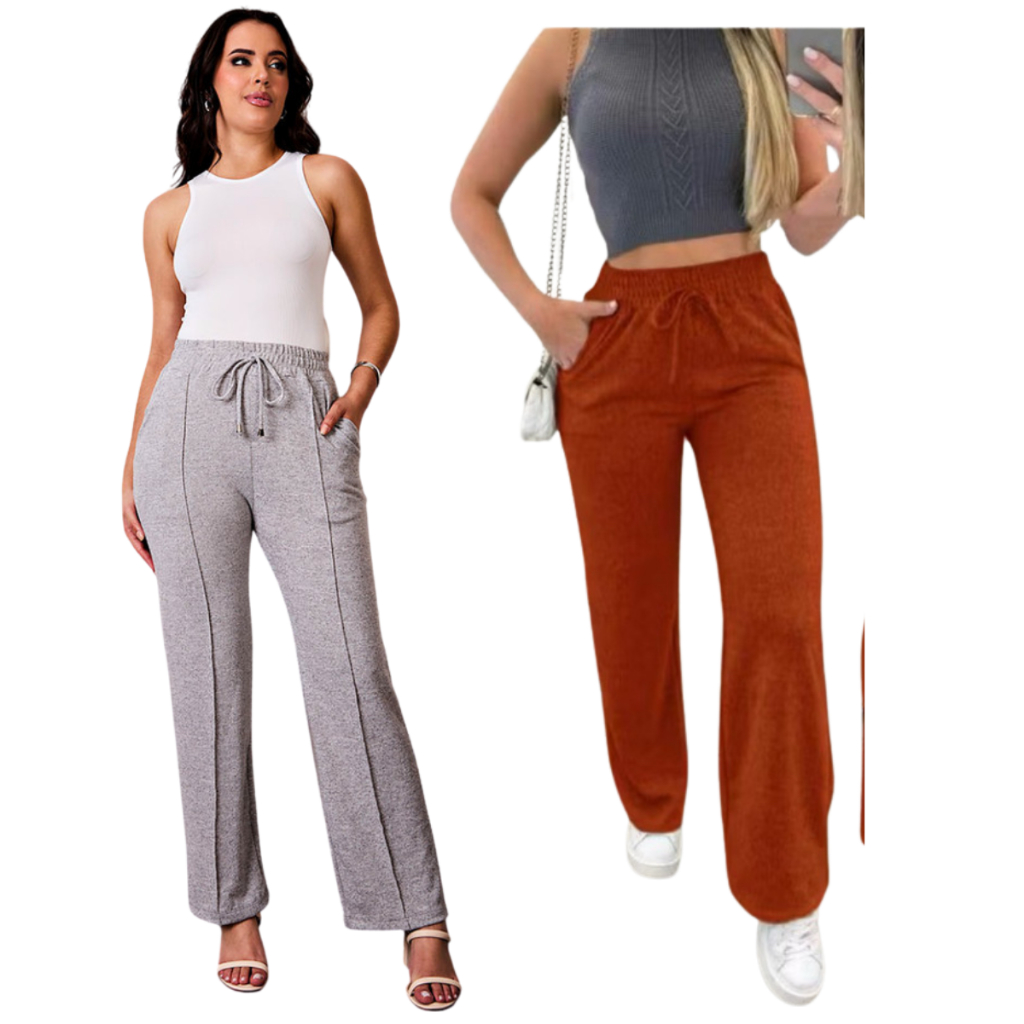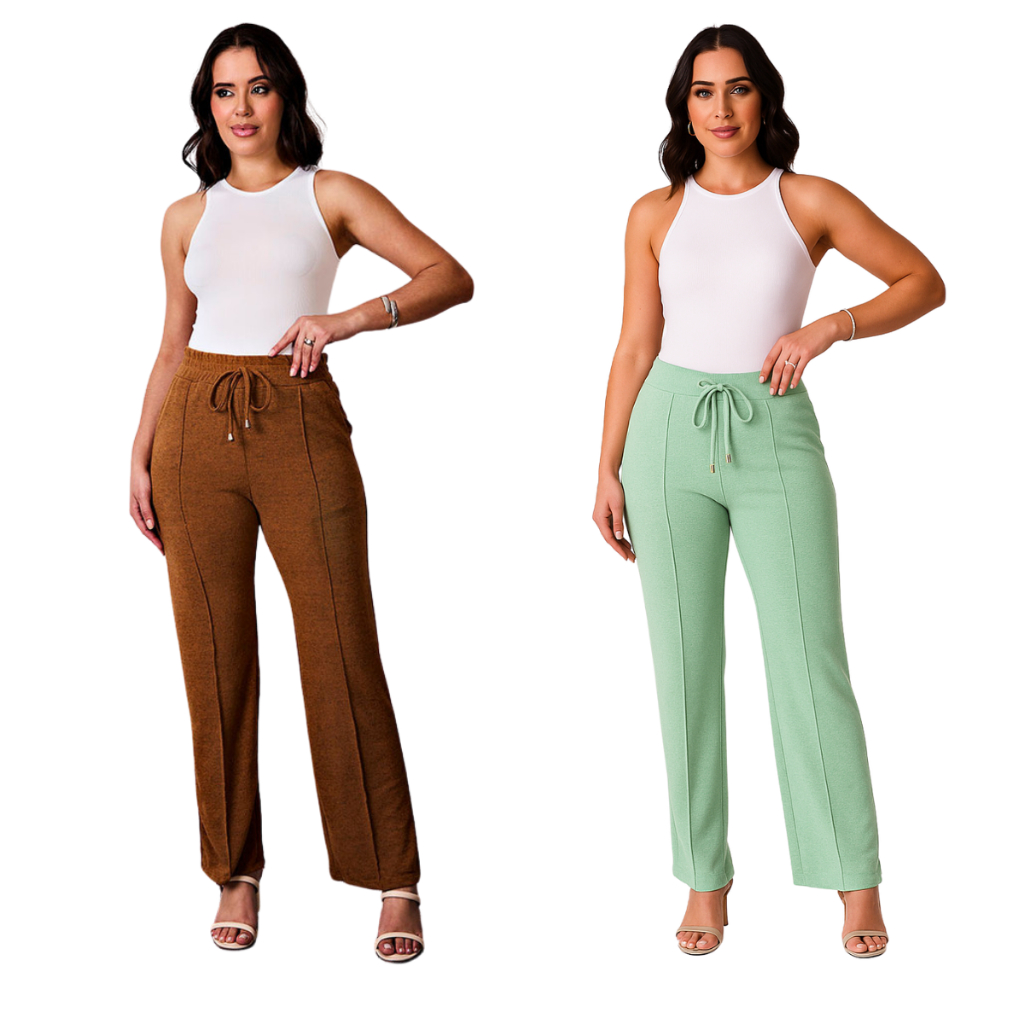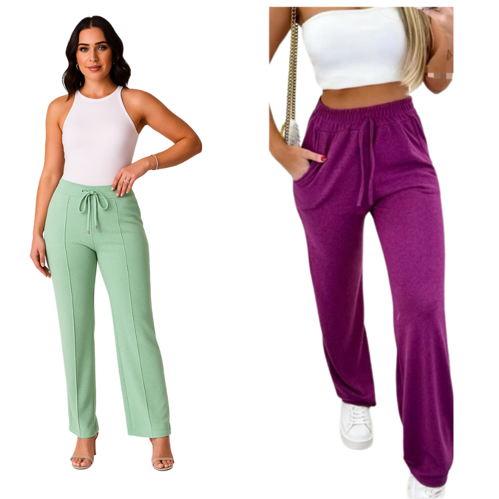 kit 2 Calça grossa Pantalona de Lã Lanzinha boca larga Confortável Calça Feminina dia a dia