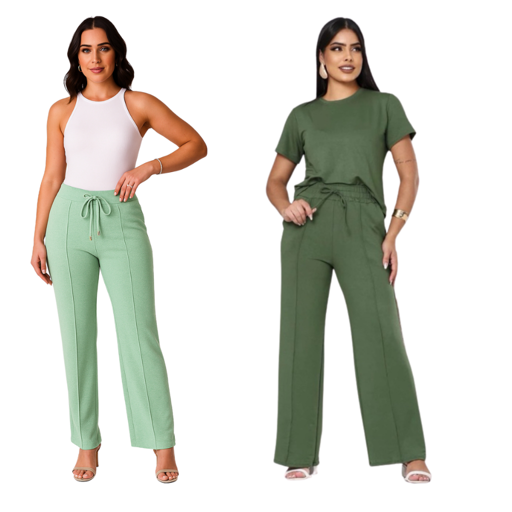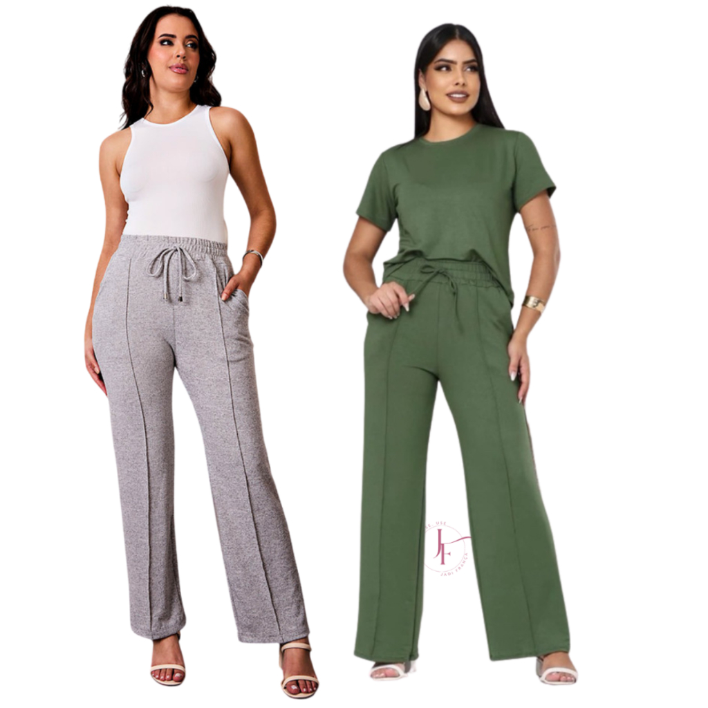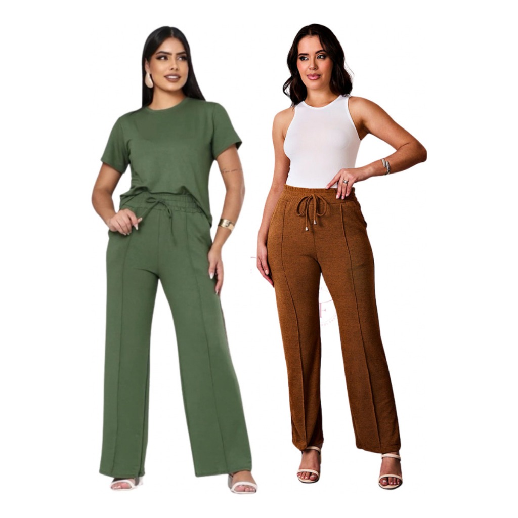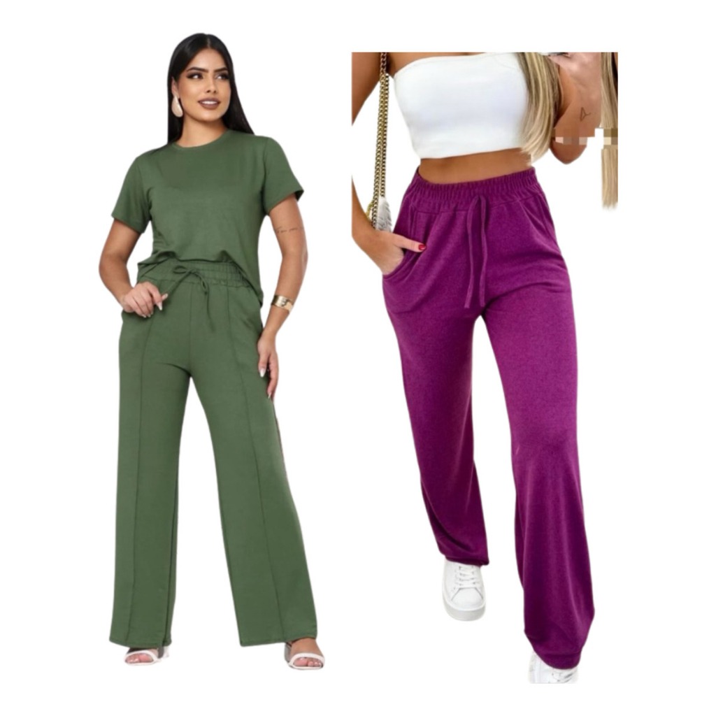 kit 2 Calça grossa Pantalona de Lã Lanzinha boca larga Confortável Calça Feminina dia a dia
