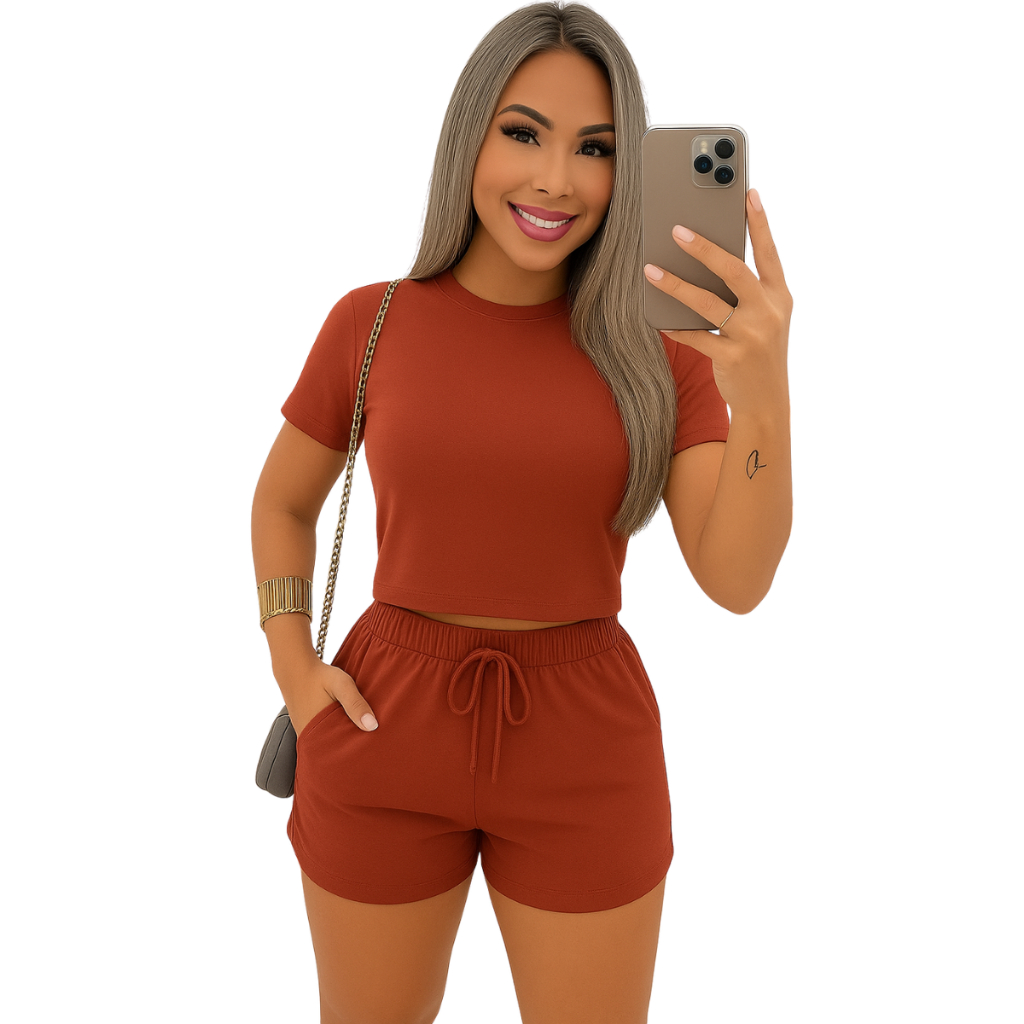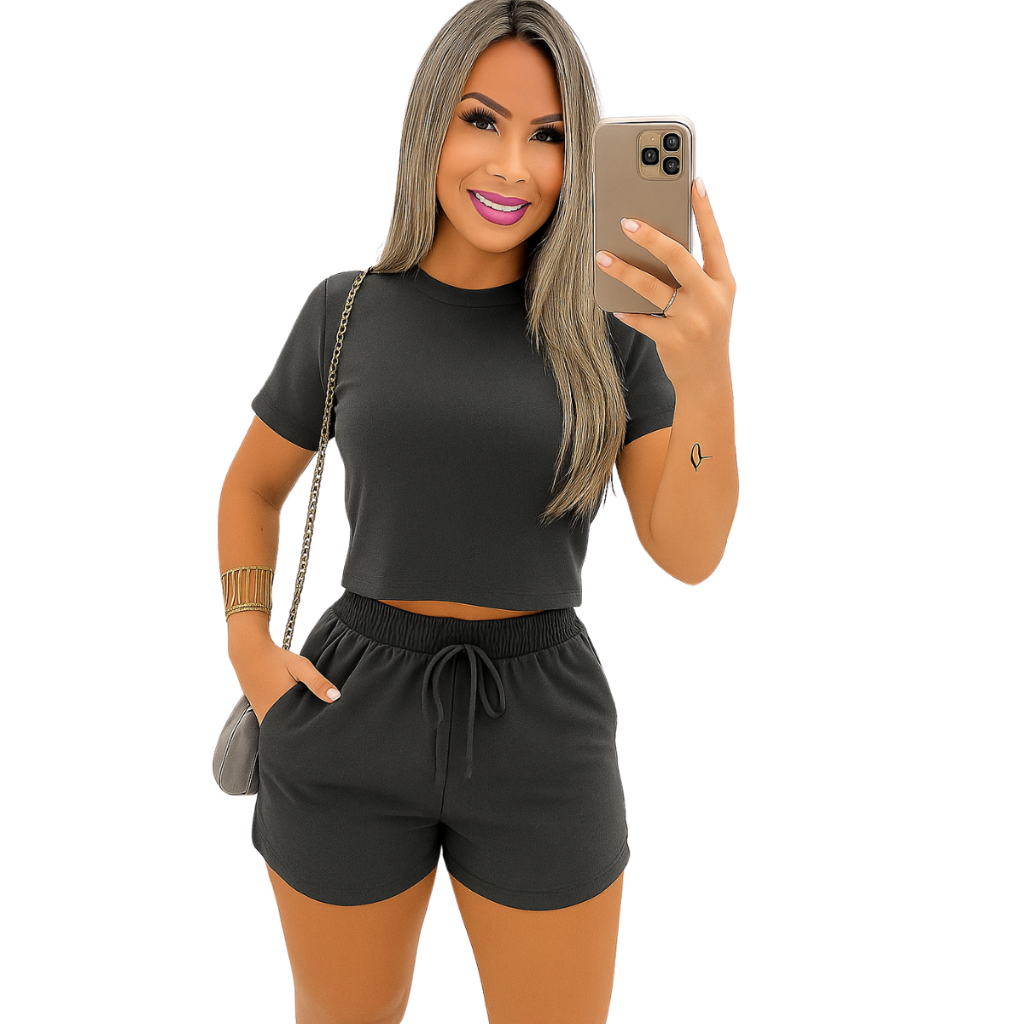 Conjunto Feminino moletinho short classico blusinha Manguinha moda blogueira