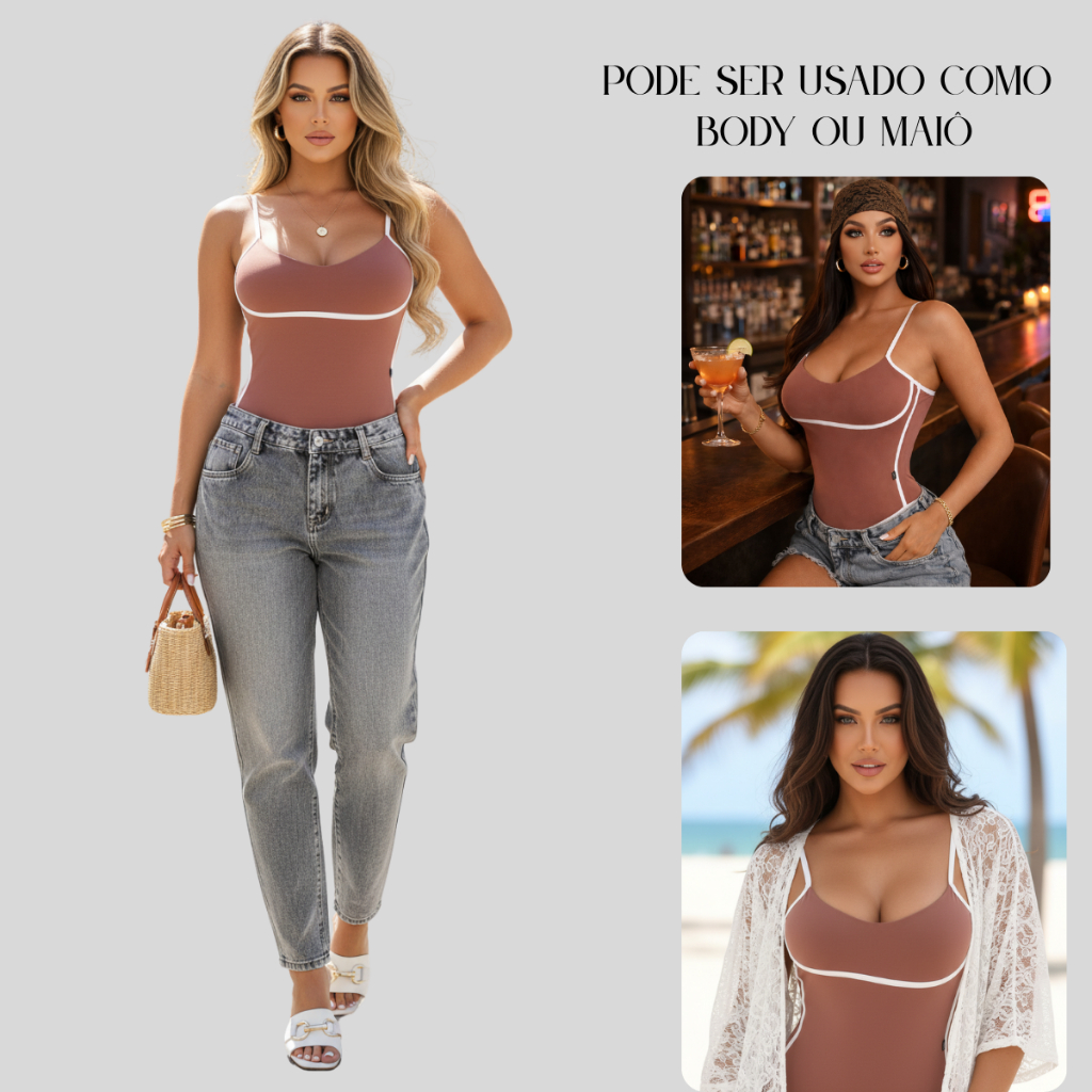 Body Maiô Feminino Alcinha Sem Fecho Cavado Suplex Alta Sustentação Tendência Verão