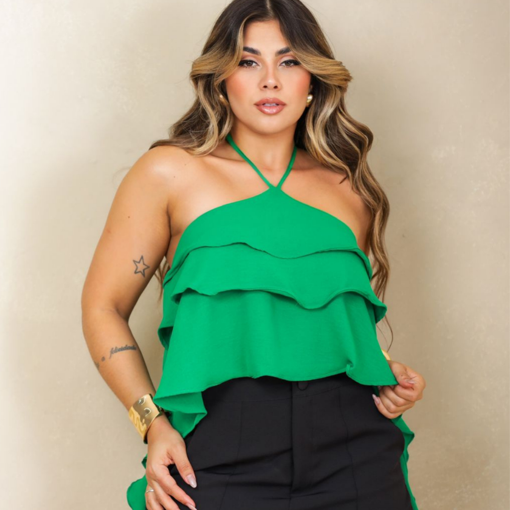 Blusa Feminina Babado Soltinha Tendência Moda Boho Ciganinha Estilo Romântica Elegante
