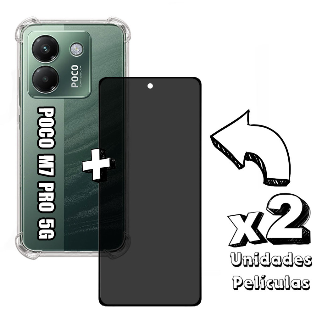 KIT Para Xiaomi Poco M7 Pro 5G - Película de Privacidade 3D - Capa - Câmera