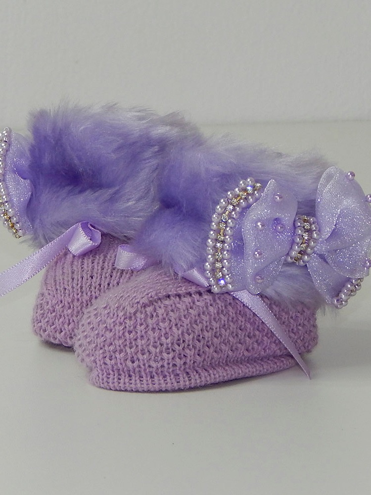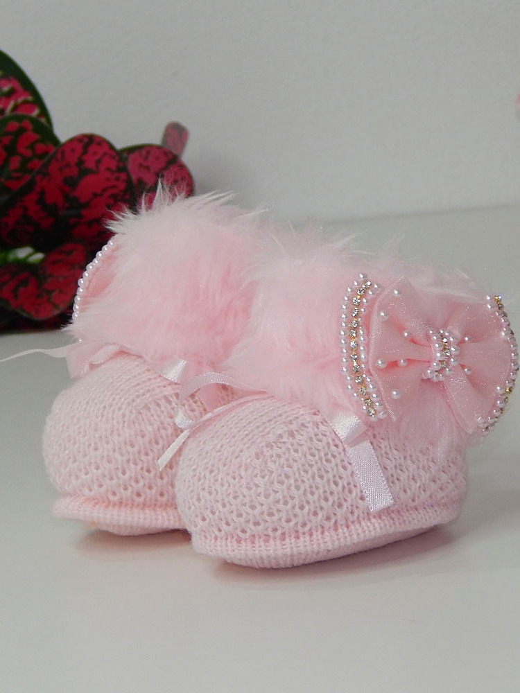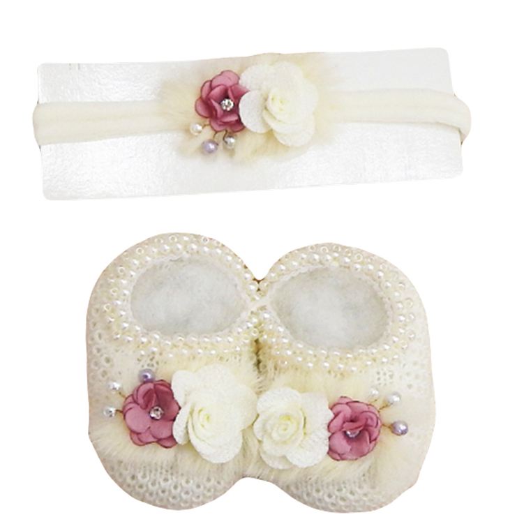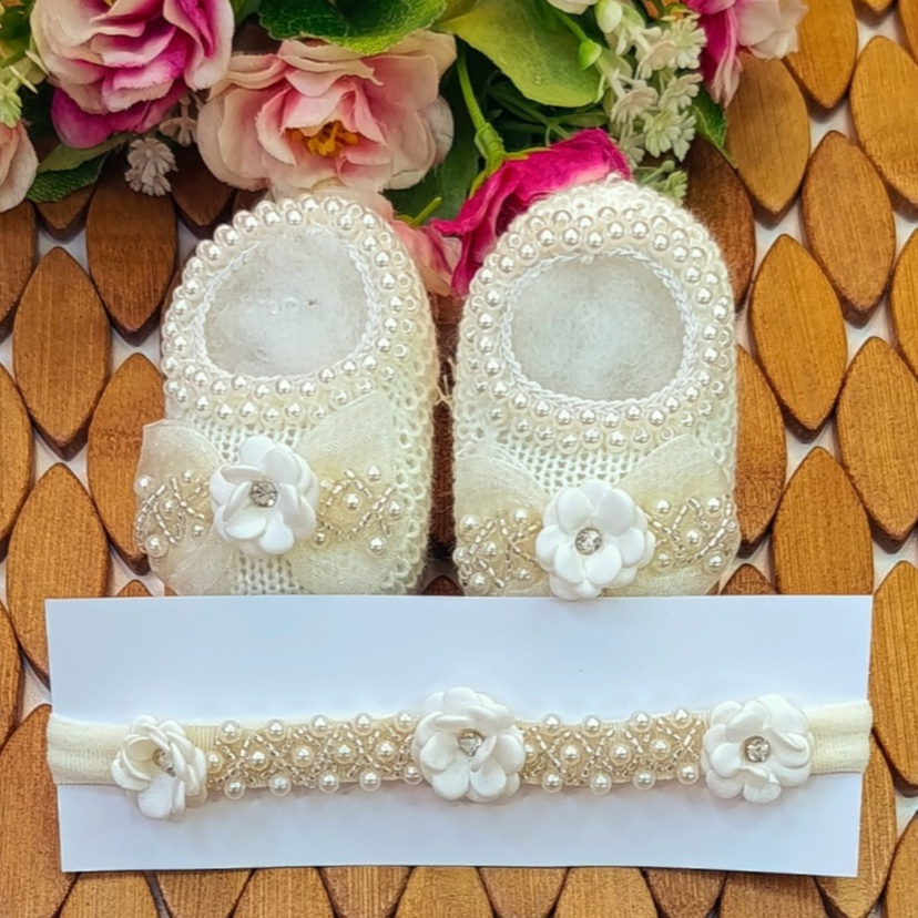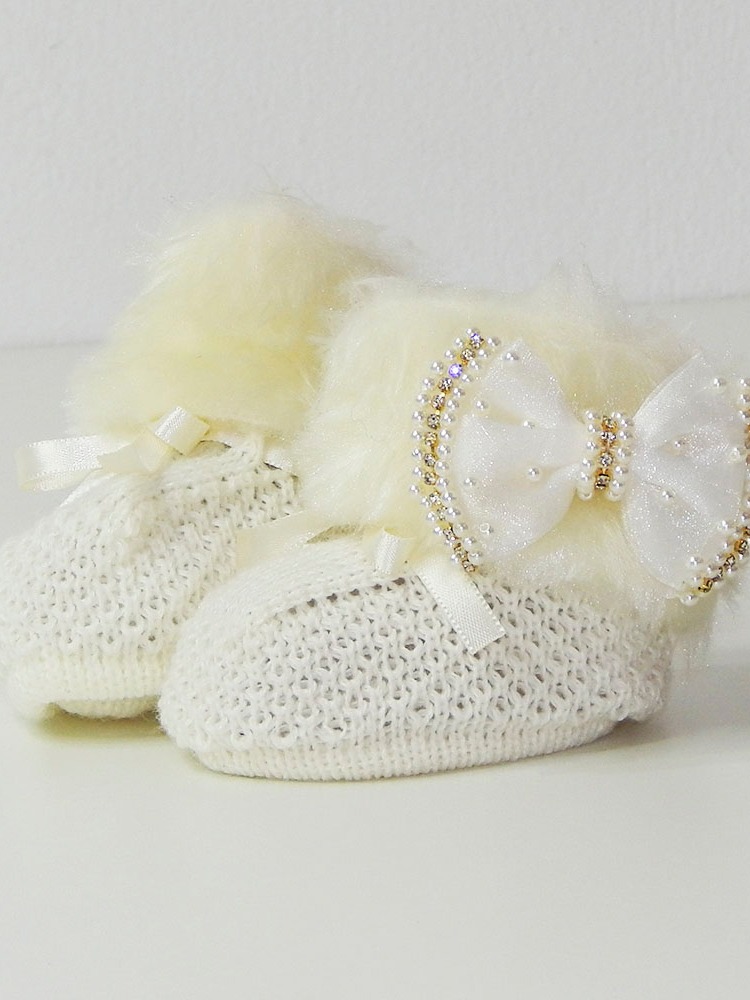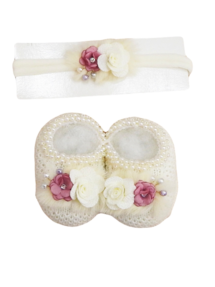 Sapatinho Tricô Bebê com Faixa de Cabelo Laço
