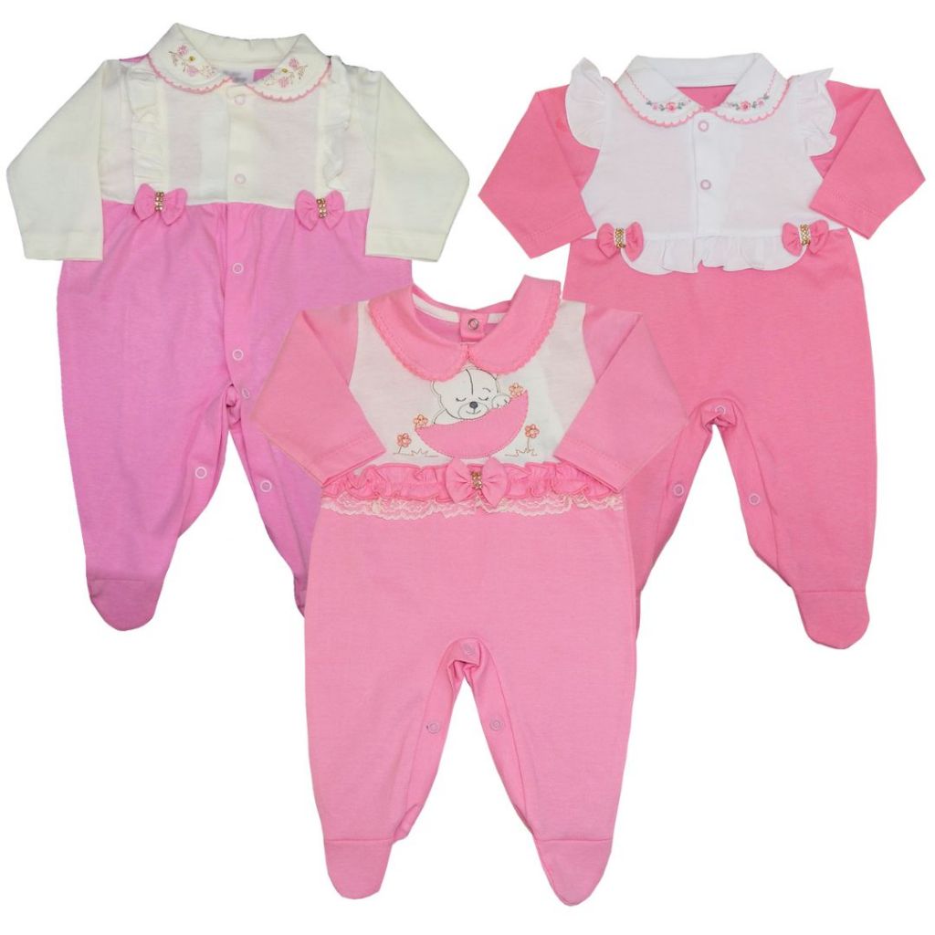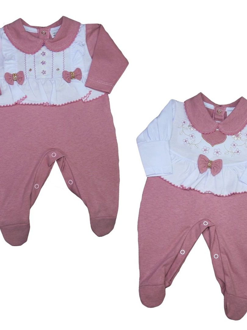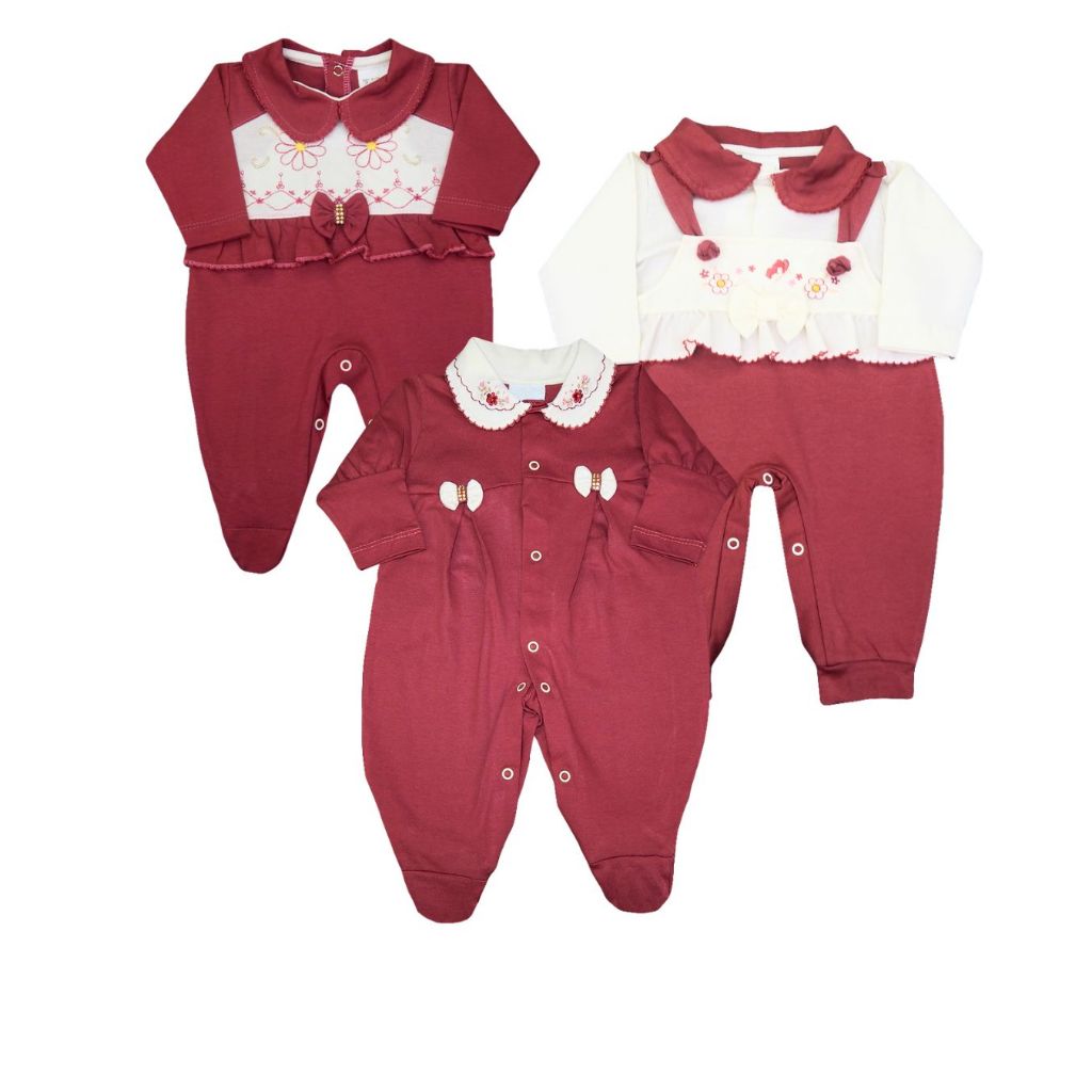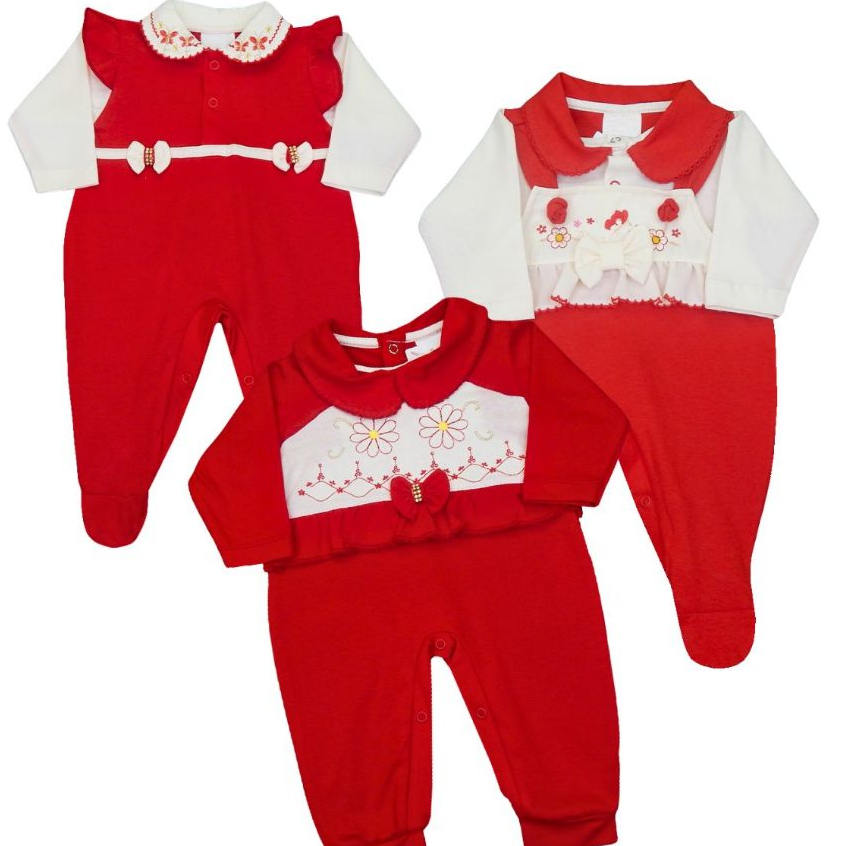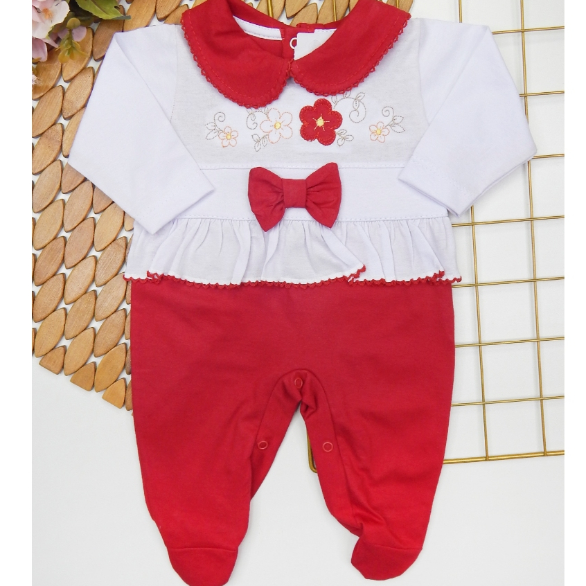 Macacão Bebê Longo Menina Malha Bordado Confort