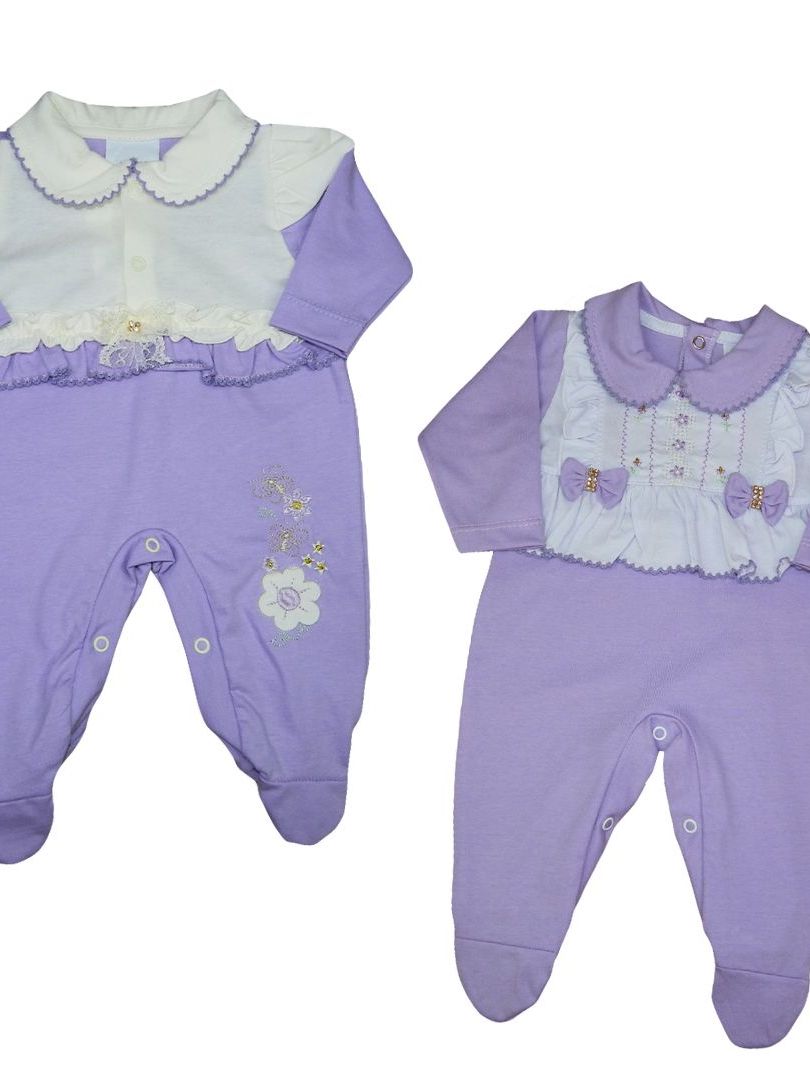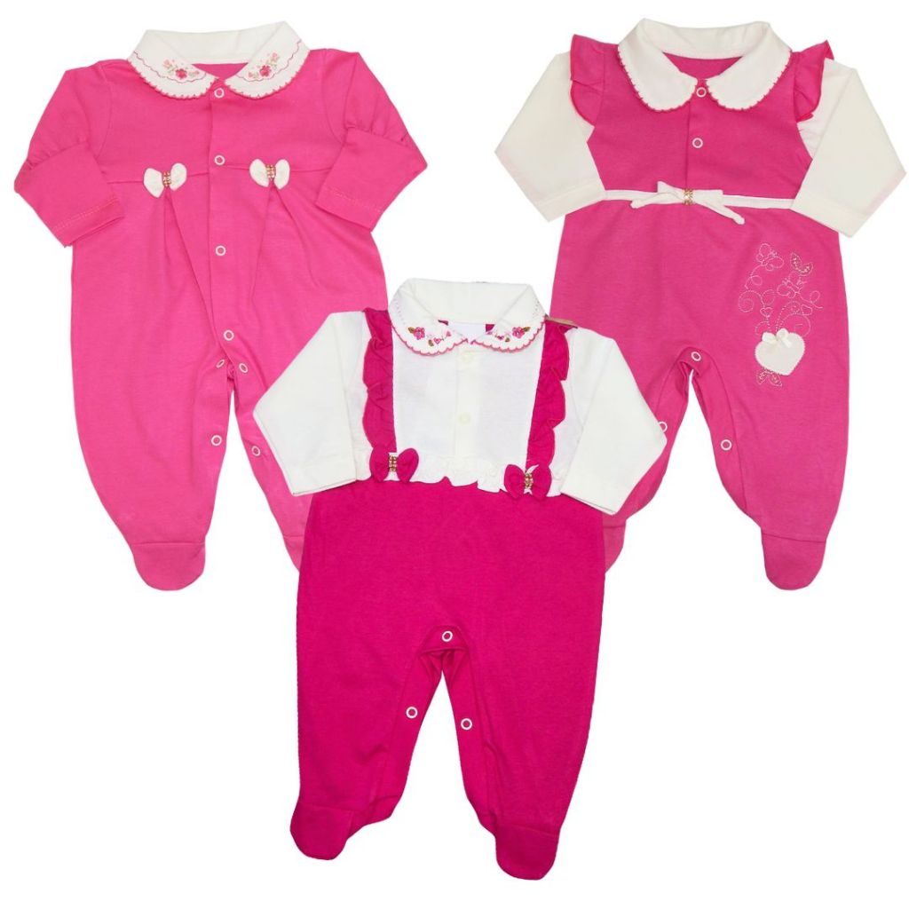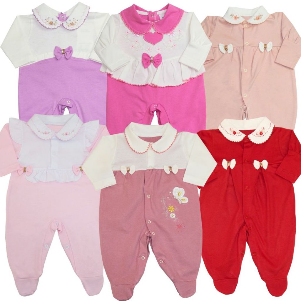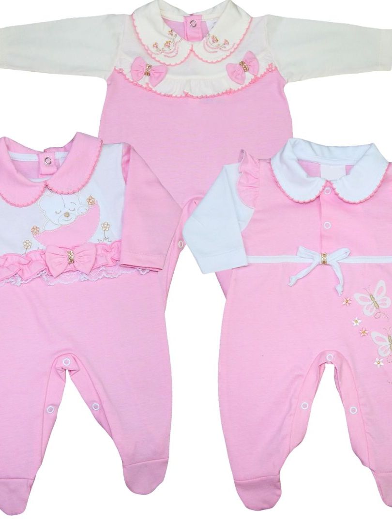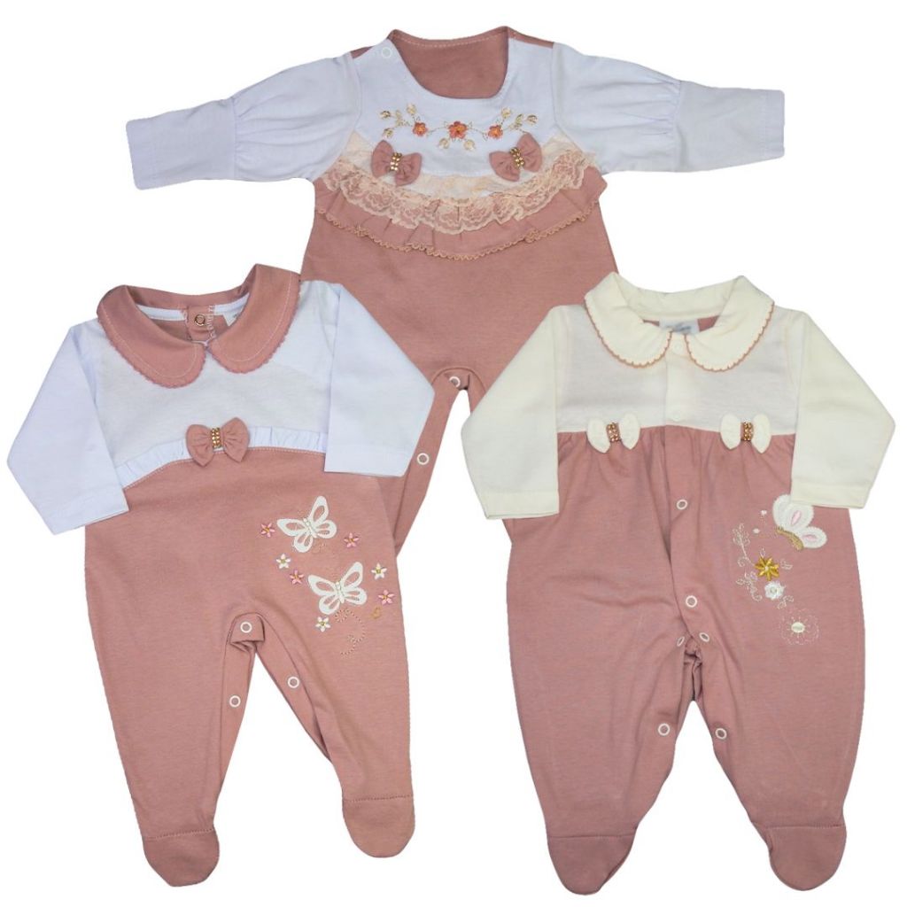 Macacão Bebê Longo Menina Malha Bordado Confort