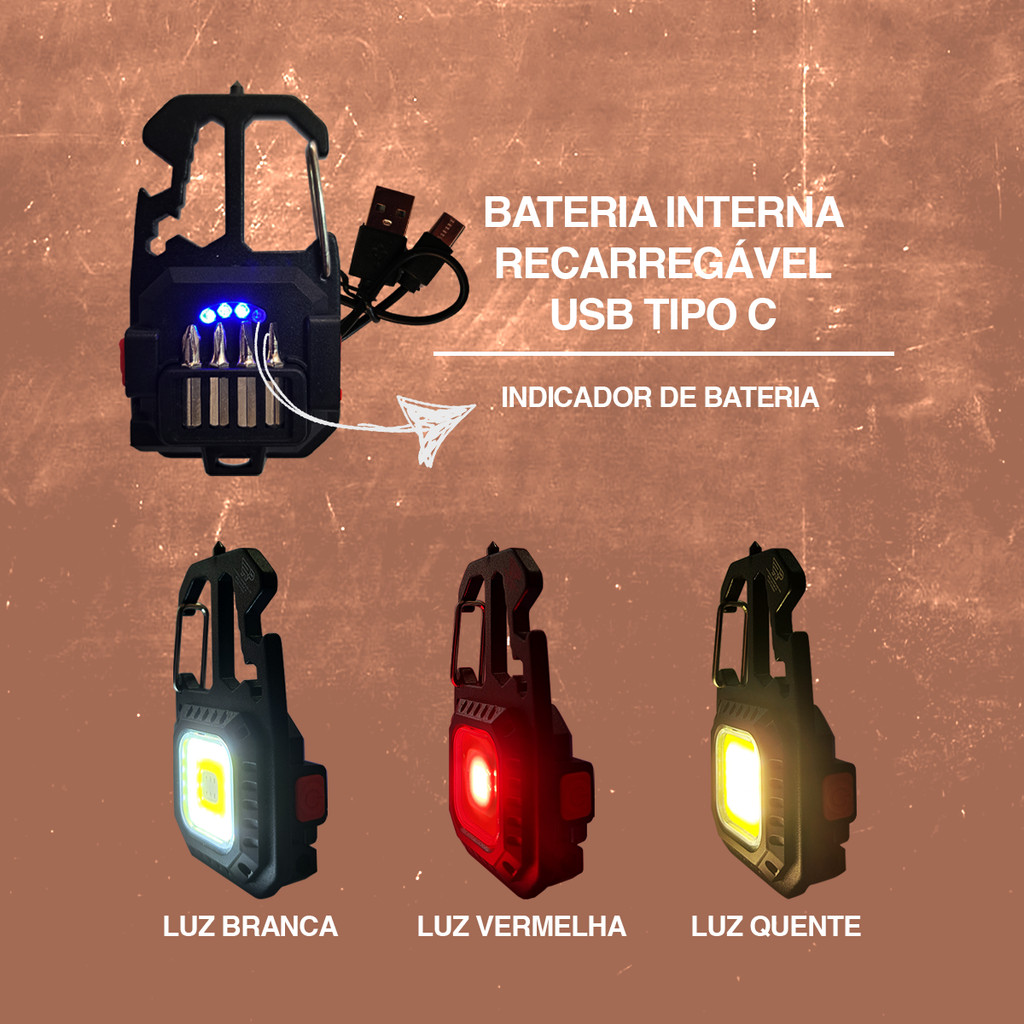 Mini Lanterna Chaveiro Led Mosquetão Abridor de Garrafas Conjunto Chaves Multifuncional Pesca