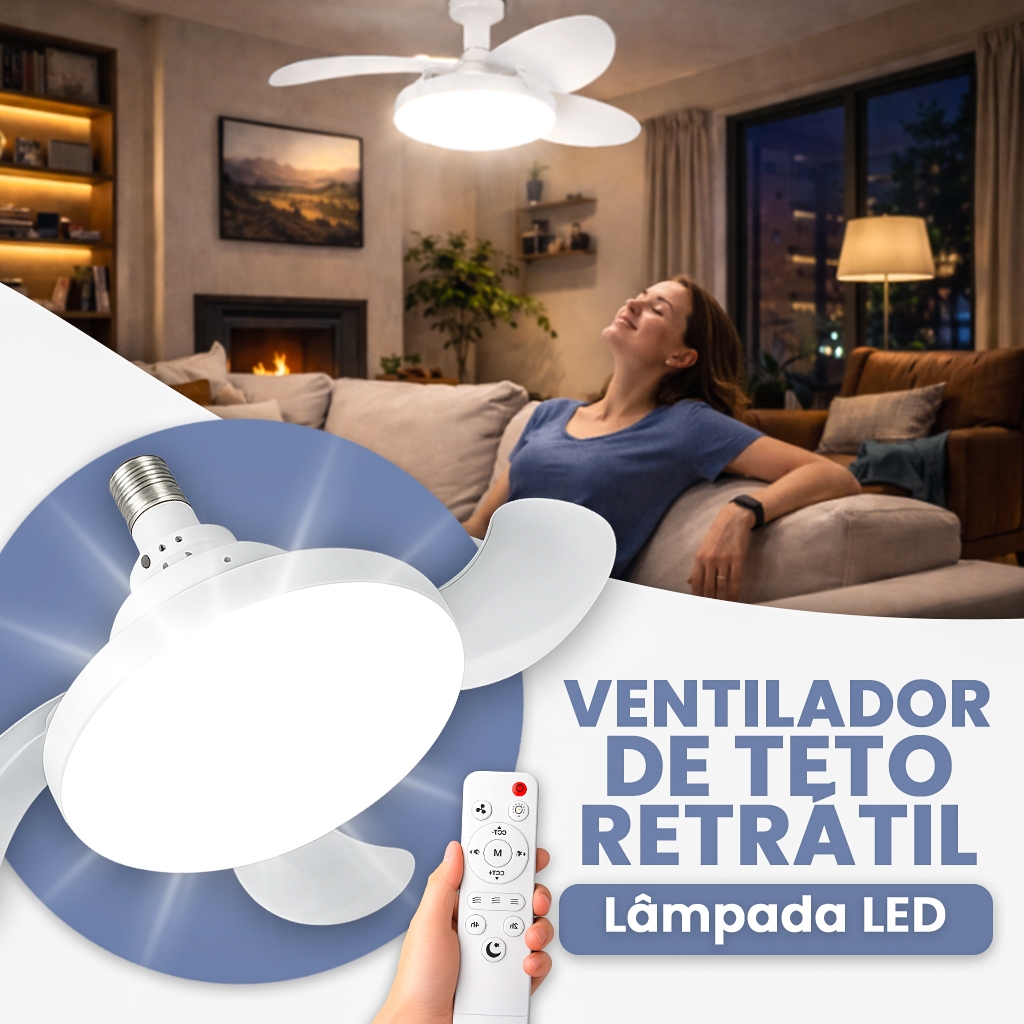 Ventilador Luminária Led 6 Pás Lâmpada Soquete Bocal E27 Teto 3 Cores Luz Branco Amarelo Bivolt