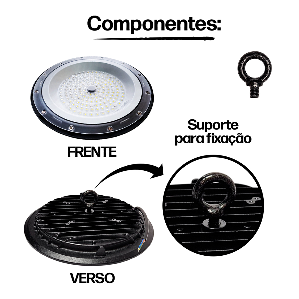 Luminária LED Industrial UFO 100W High Bay SMD Branco Frio a prova d'agua IP66