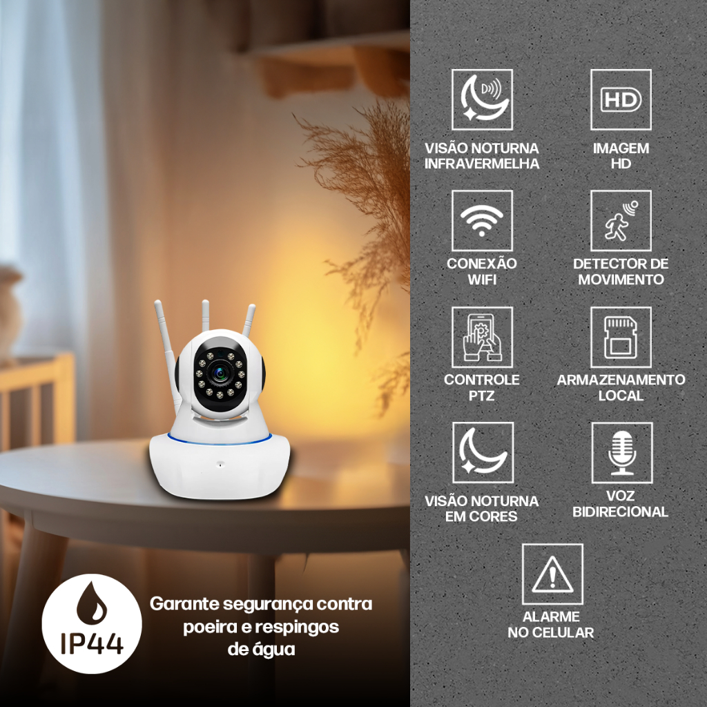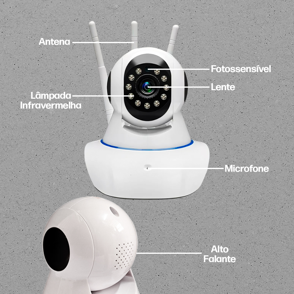 Câmera IP Wi-Fi 360° 3 Antenas HD Babá Eletrônica Smart Visão Noturna Alarme Sem Fio App Yoosee
