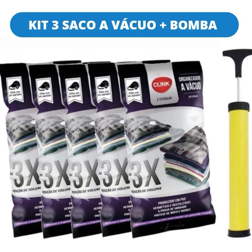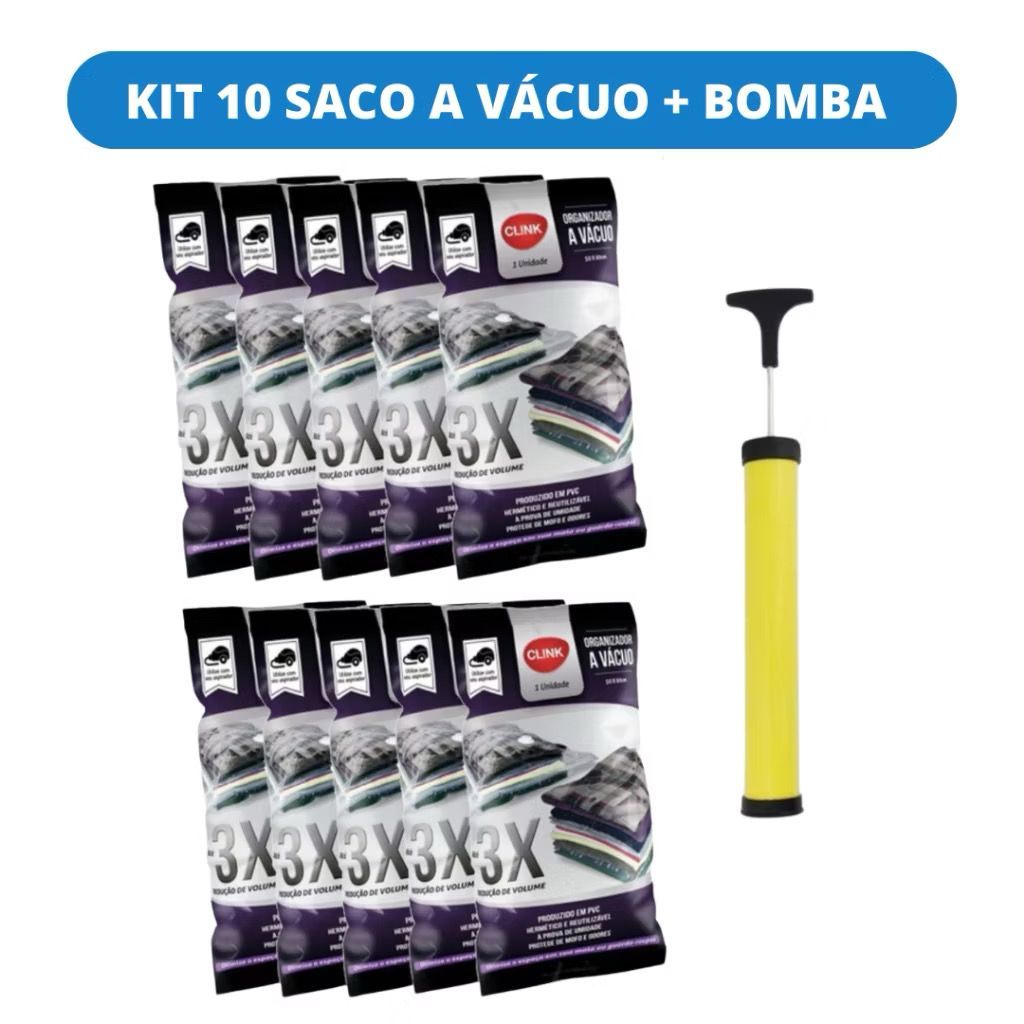Kit 10 Sacos a Vácuo 50x60 + Bomba Zíper Oraganizador Para Guarda Roupas viagem mala