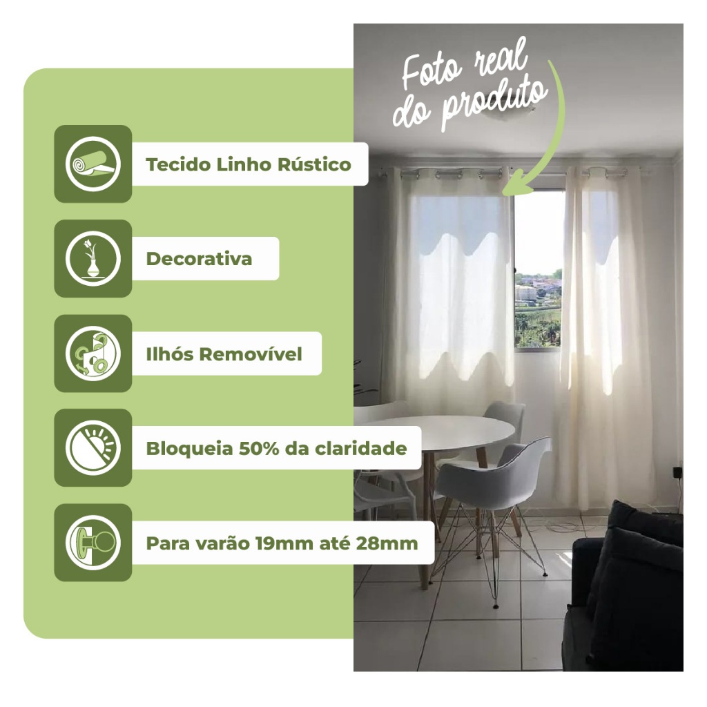Cortina tecido de Linho Rustico 2,80 X 1,60m Altura Branco