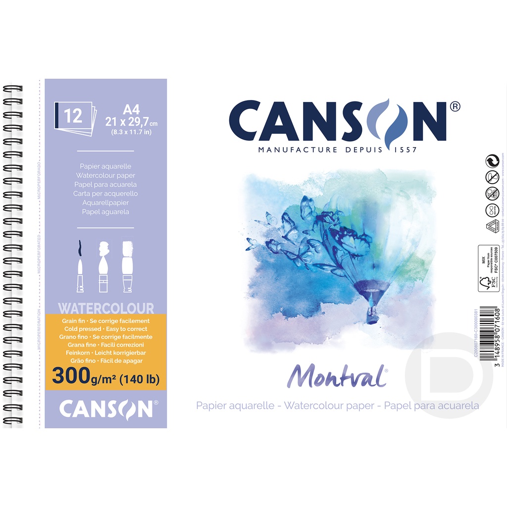 Bloco Espiral Papel Aquarela Montval Canson A4 300g 12folhas
