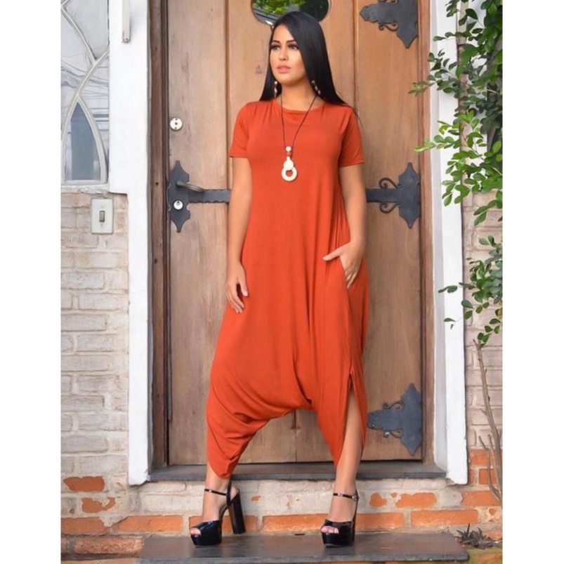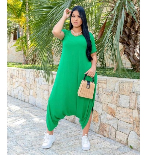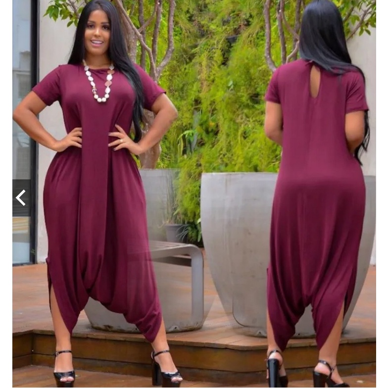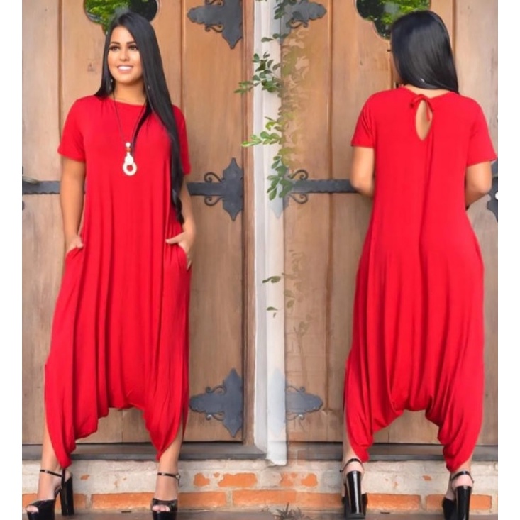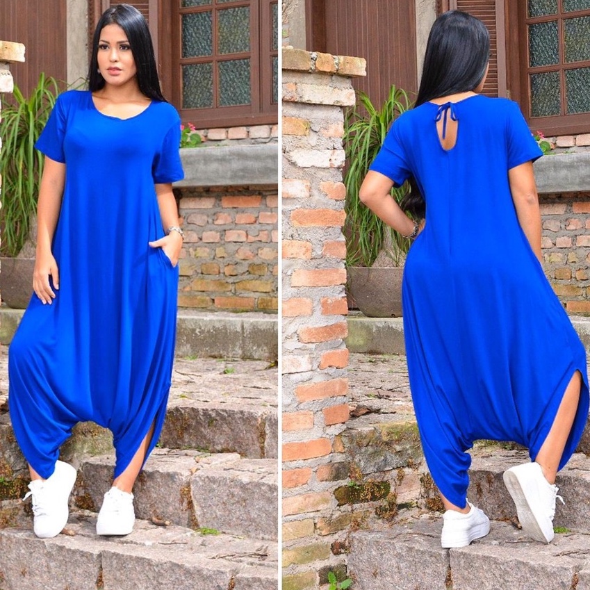 Macacao Saruel Estampado Bolsos Feminino Viscolycra Max Longo Soltinho Com Manga 38 ao 52