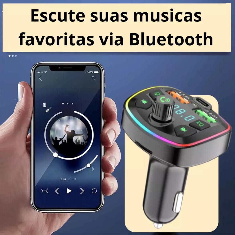 Carregador Veicular Transmissor Bluetooh Fm Mp3 Pd 20w Tipo c Q7