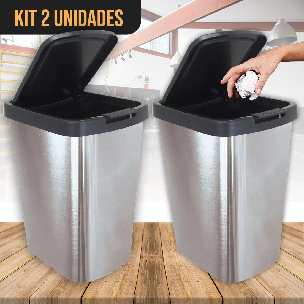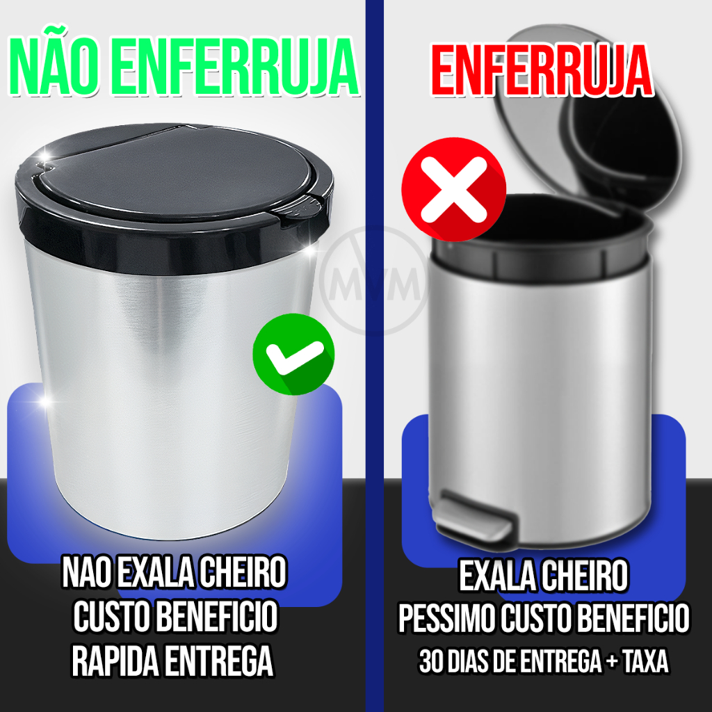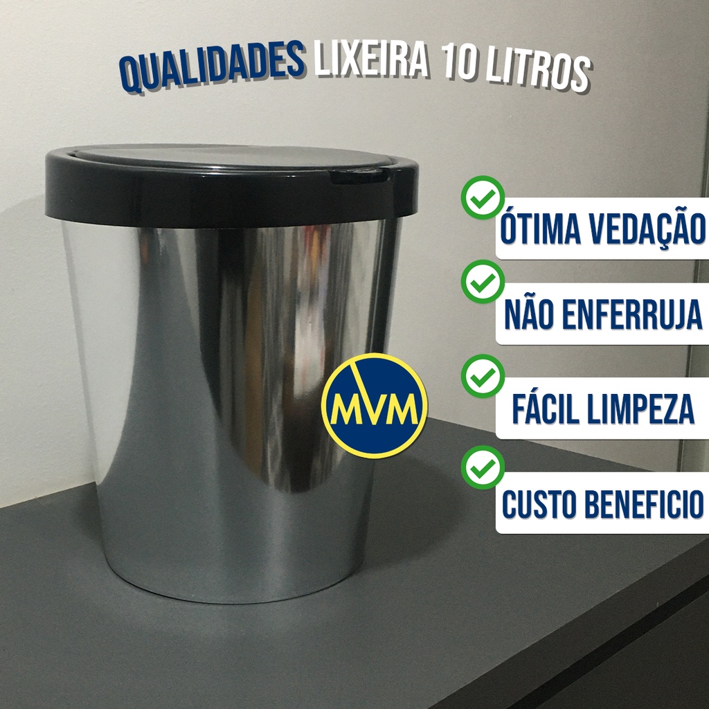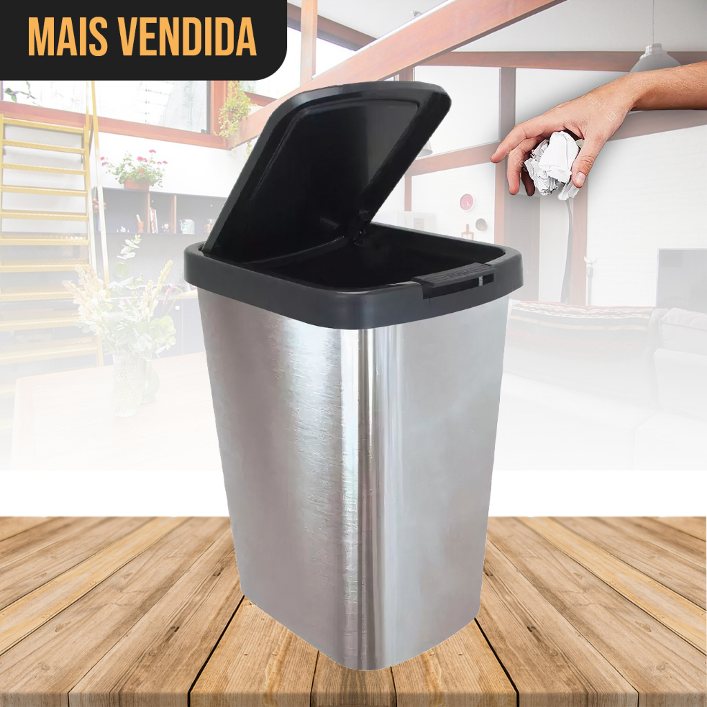 Lixeira Cesto de Lixo 10 Litros Inox Automática Tampa Click Label Banheiro Cozinha Escritório Quarto