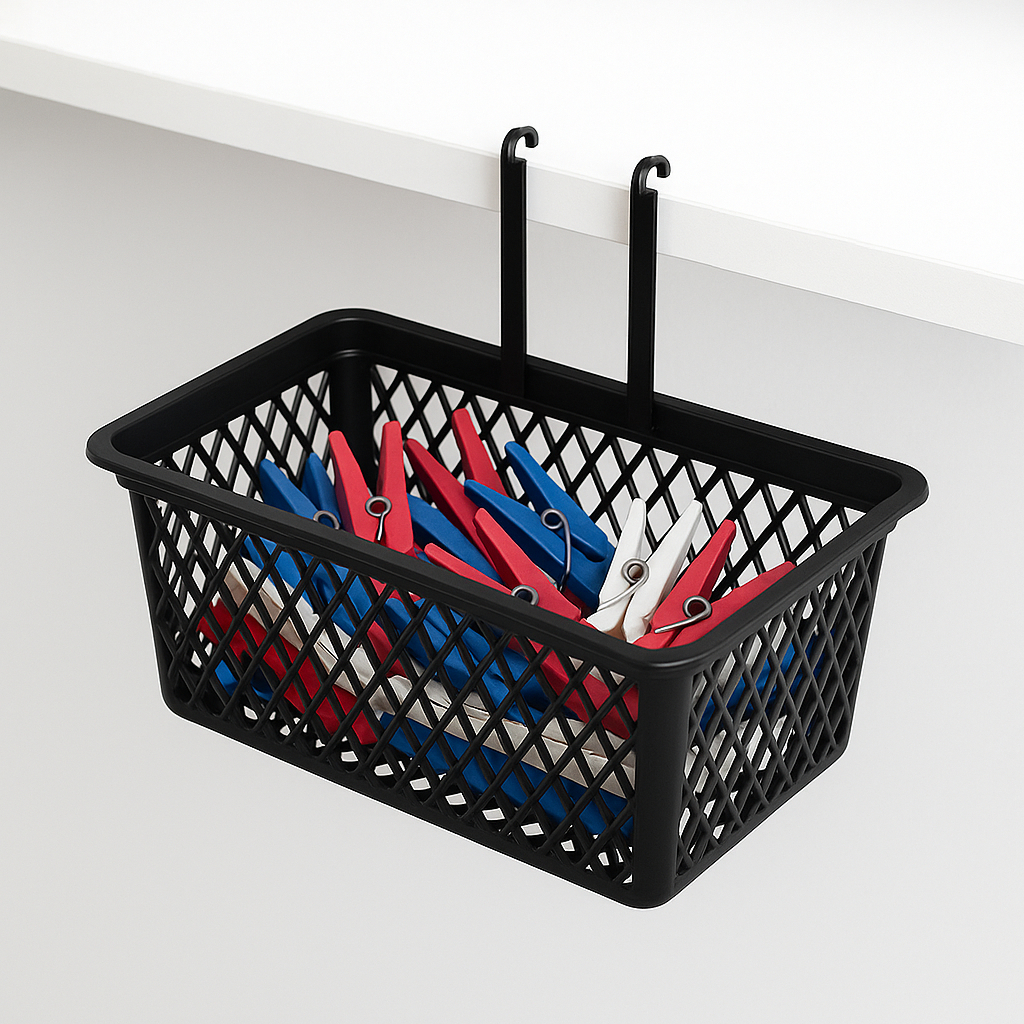 Kit Caixa Cesto Porta Organizador Prendedor de Roupa Com 24 Pregadores Grátis Grande Com Gancho