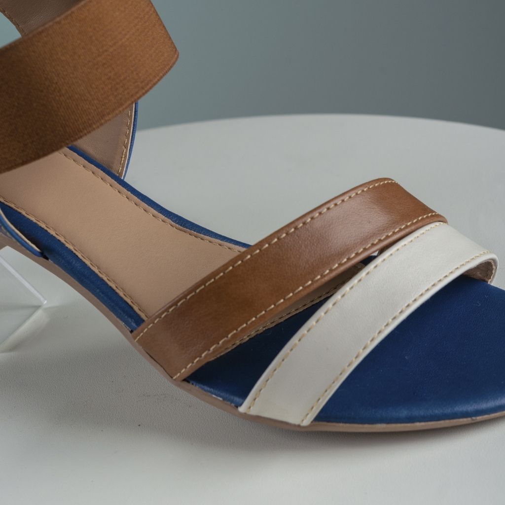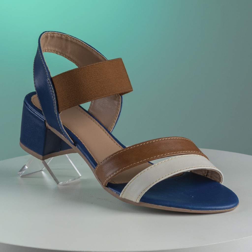 Sandália Feminina Salto Grosso Bloco com Tiras Elástico Ajustável Colorida Confortável Moda Casual