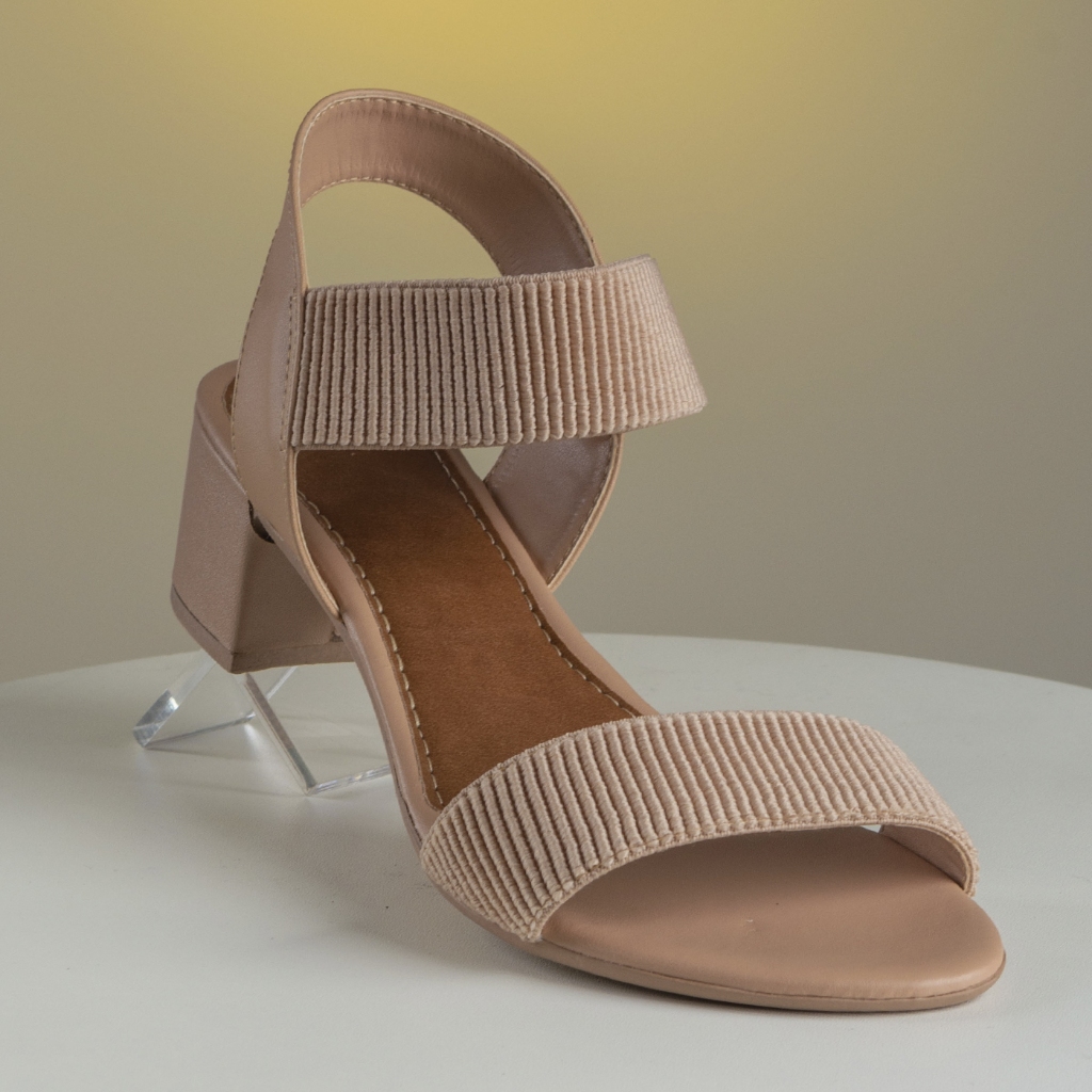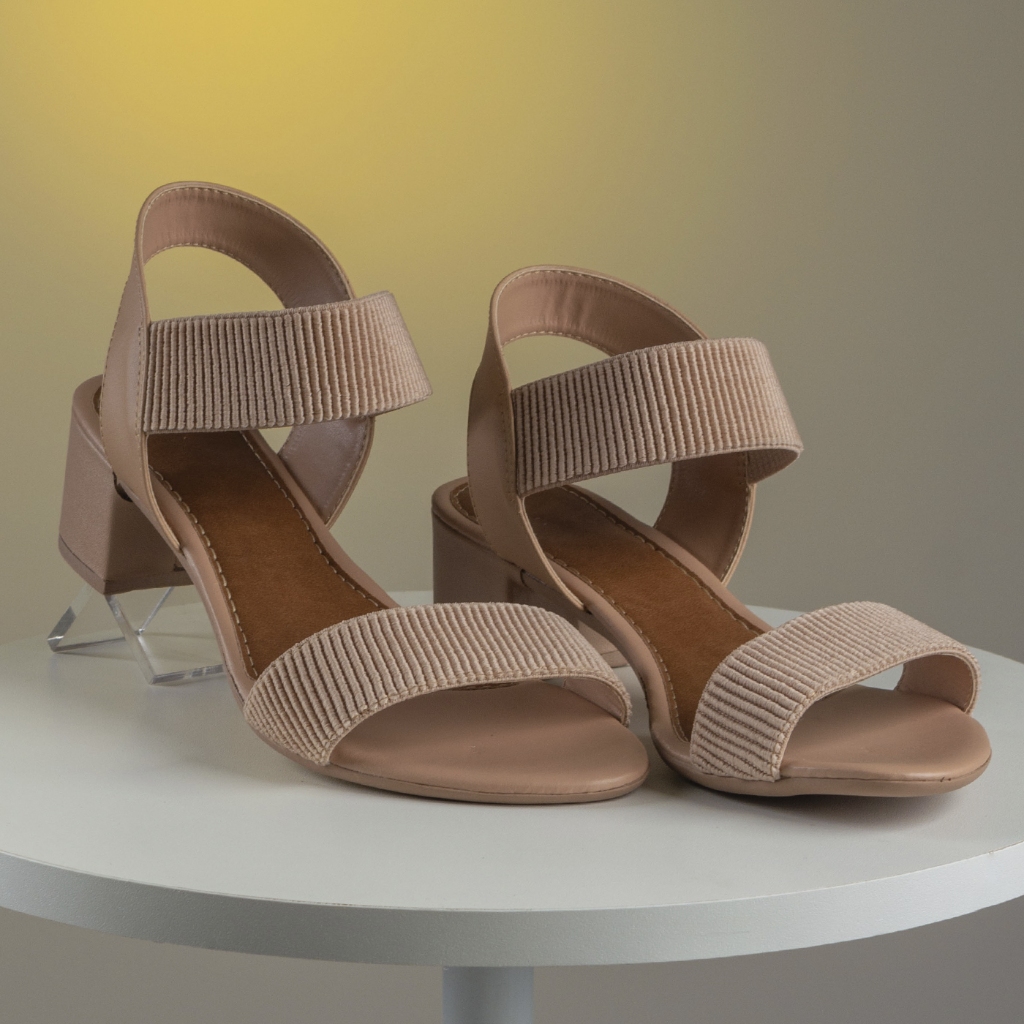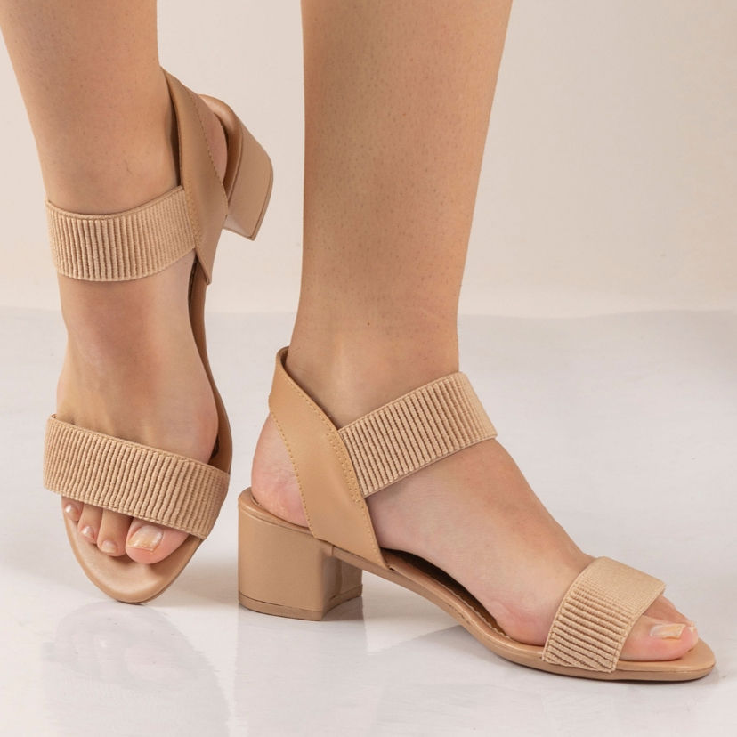 Sandália Feminina Tiras Elástico Calce Fácil Calcanhar Aberto Salto Baixo Confortável Dia a Dia