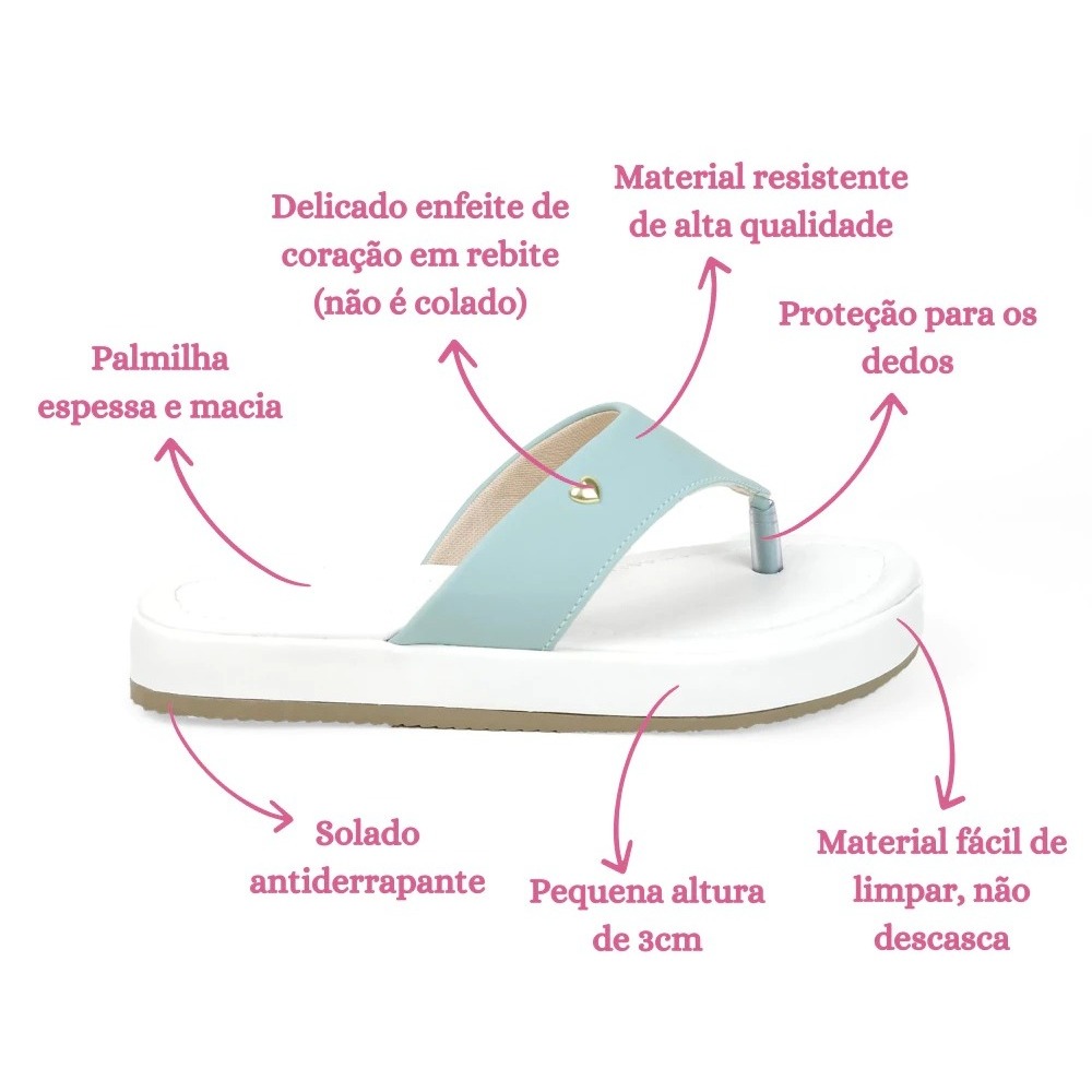 Chinelo Feminino Com enfeite de coração Sola Flat Elegante e Estilo