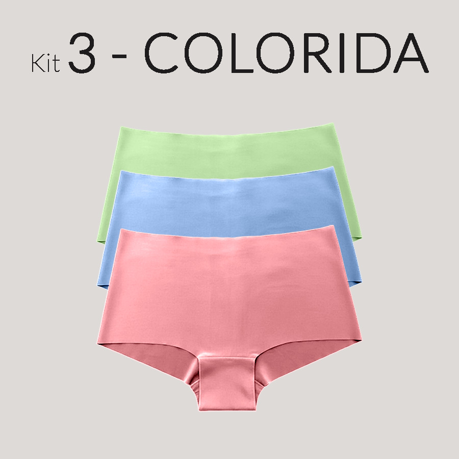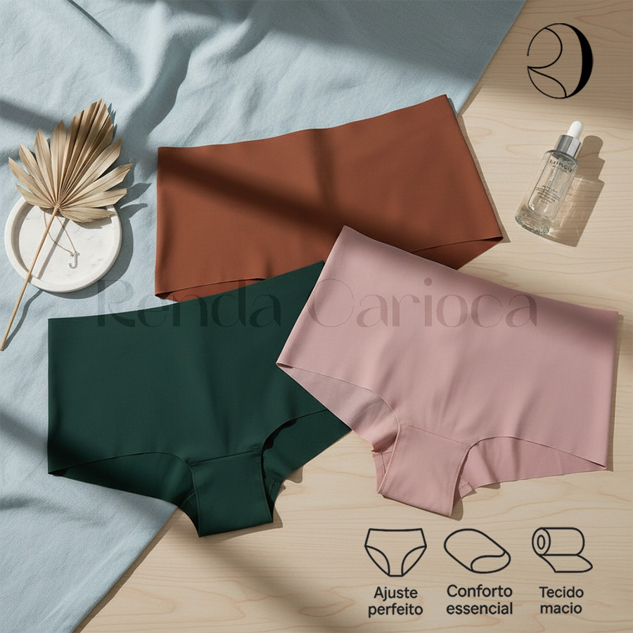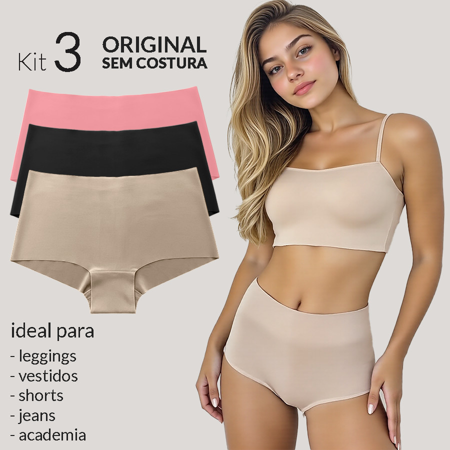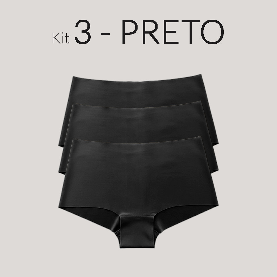 KIT 3 Calcinhas Boxer Sem Costura Corte a laser Cós Alto Não Marca Invisível Cintura alta Cueca Box Lingerie Feminina