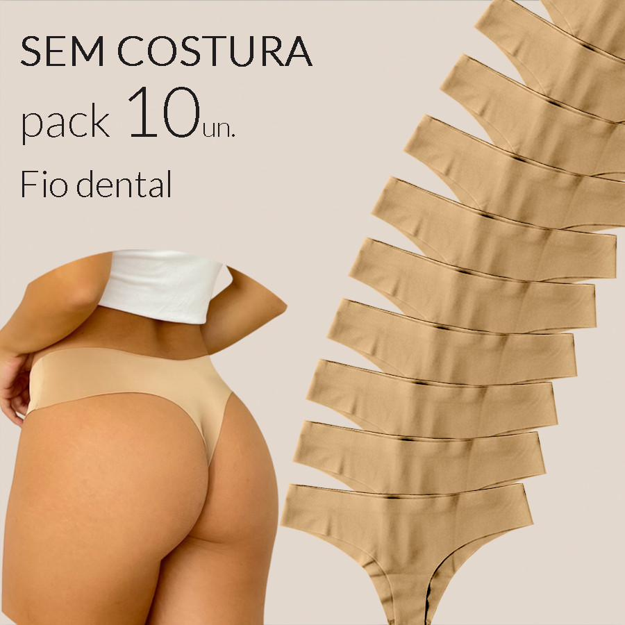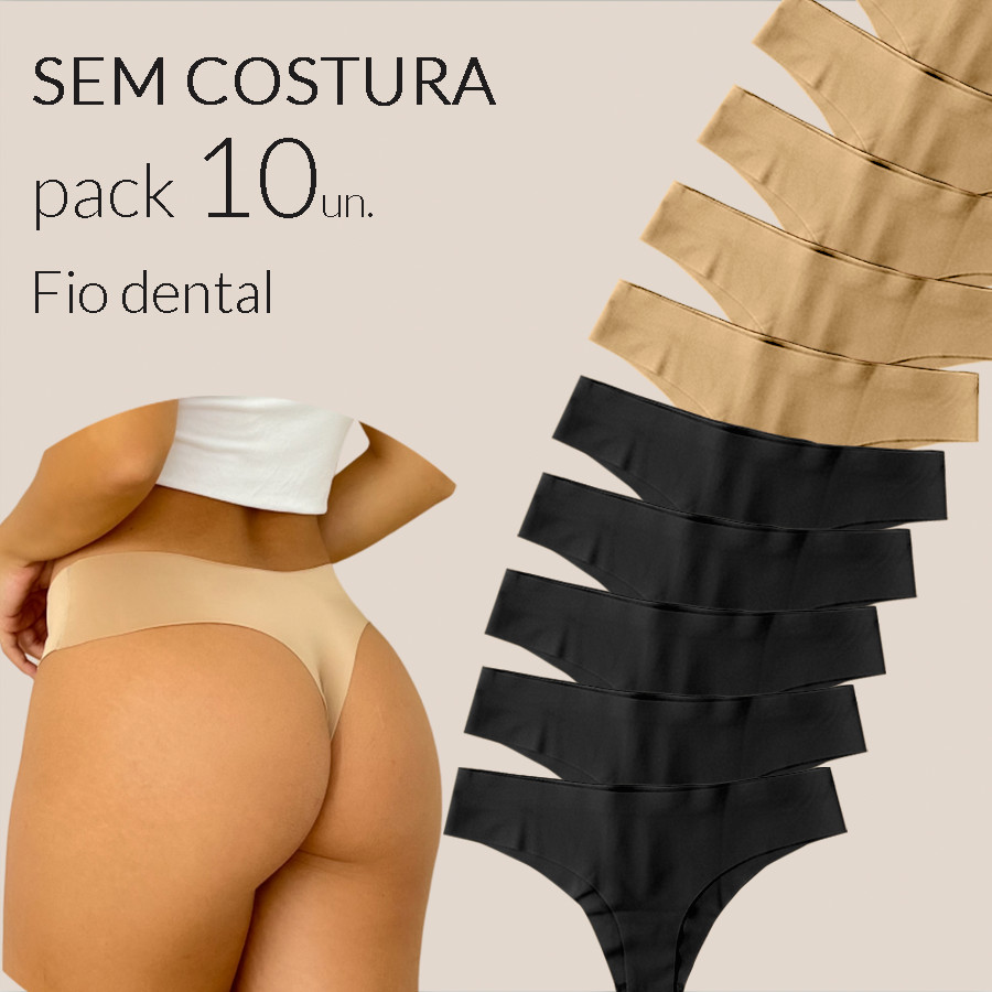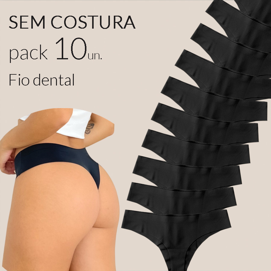 Kit 10 Calcinha Sem Costura Fio Dental Tanga Conforto Corte a Laser Não Marca
