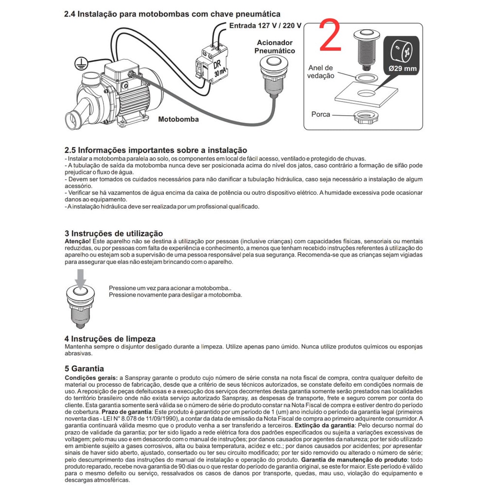 Botao Pneumatico Cromado Para Banheira Spa Ofuro Completo