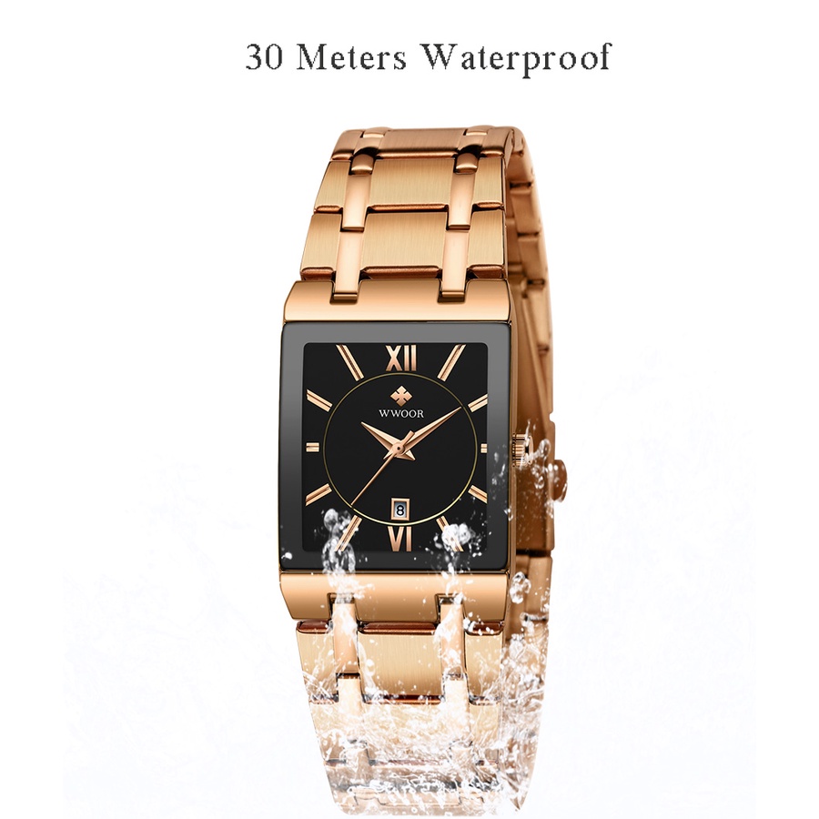 WWOOR Nova Moda Designer Relógios Femininos De Marca Top Luxo Rosa Quadrada Pulseira De Ouro Para Senhoras Vestido De Pulso Presente Fêmea-8858