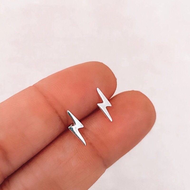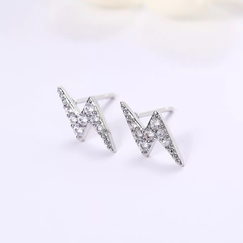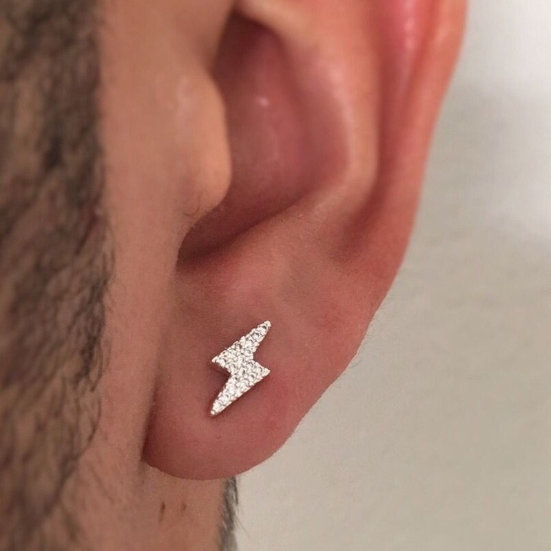 Brinco Masculino | Feminino Piercing de Raio Prata Cravejado com Zircônia