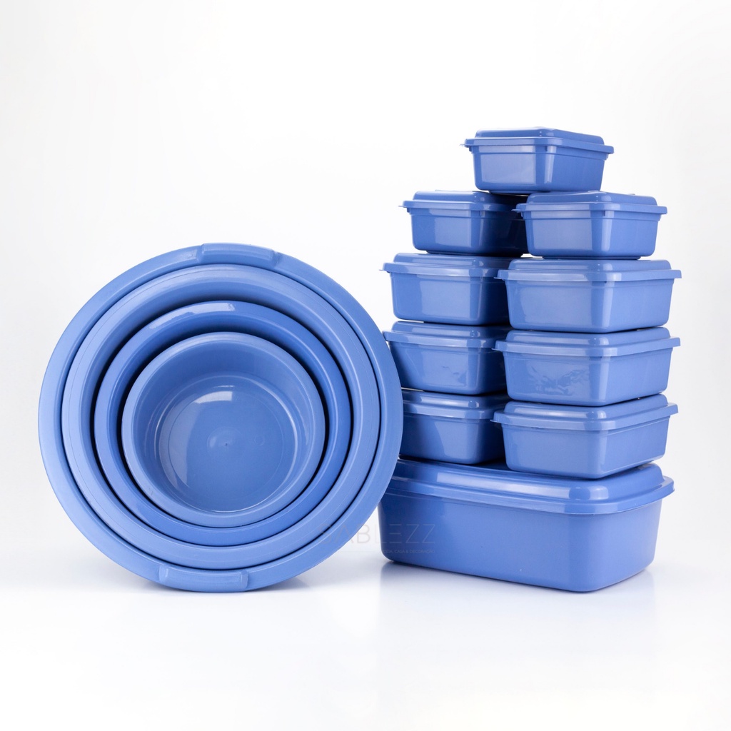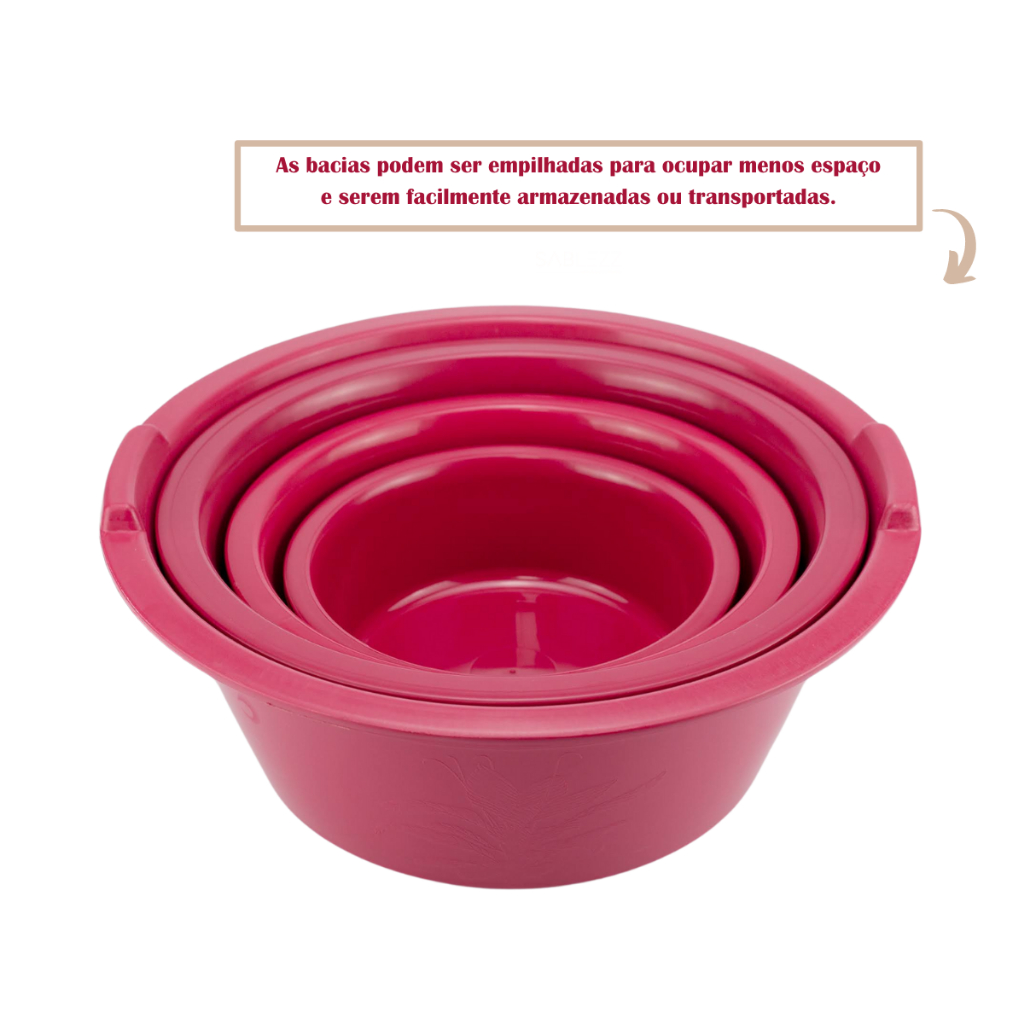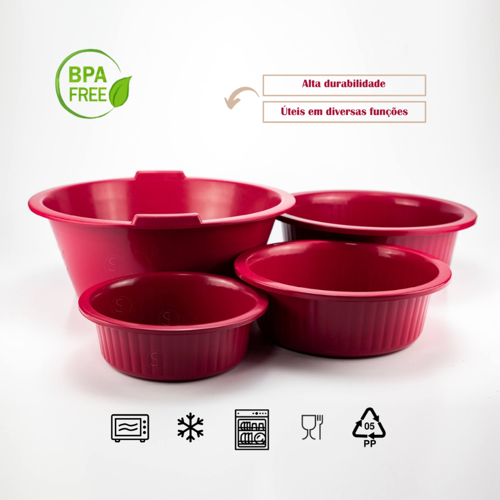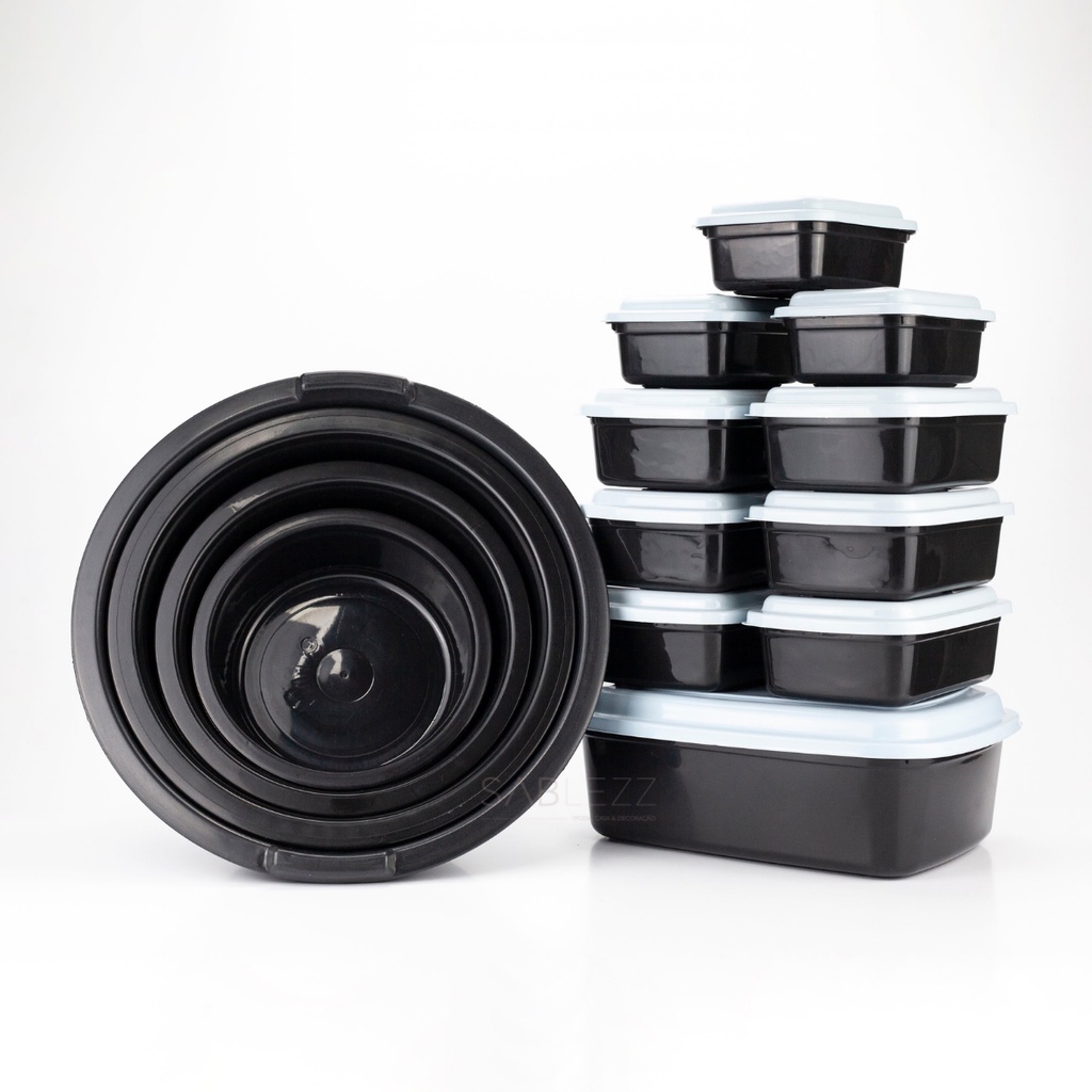 Kit Conjunto 4 Bacias Redonda Resistente + Jogo De 10 Potes Para Marmita Armazenar