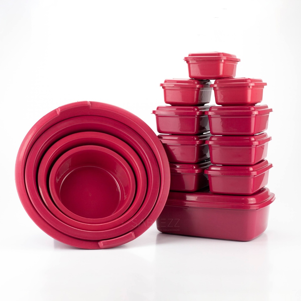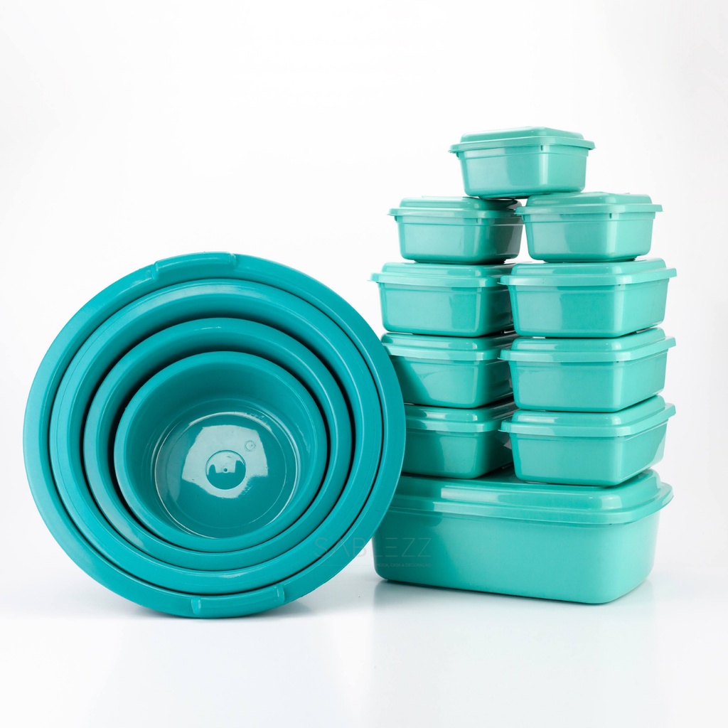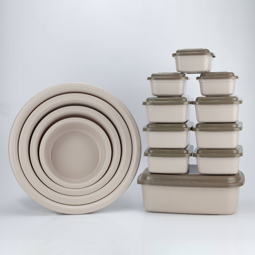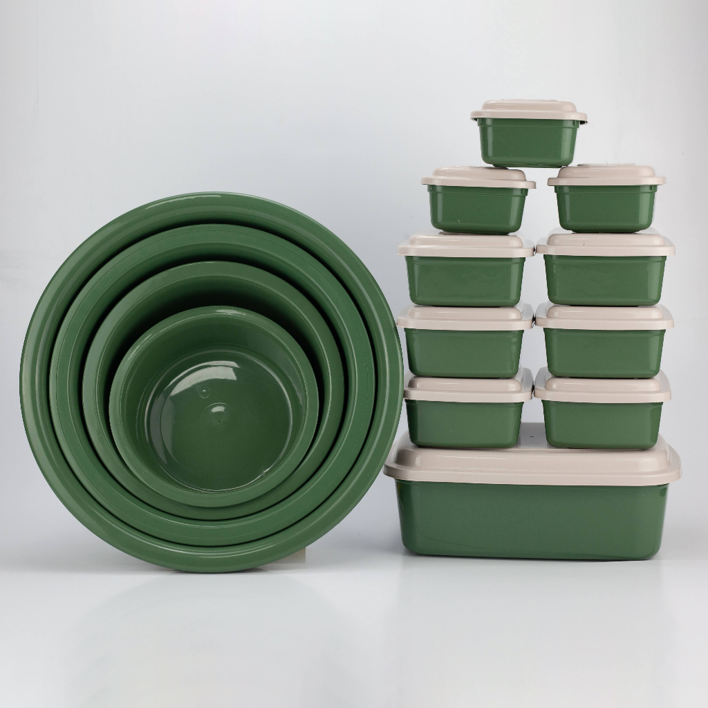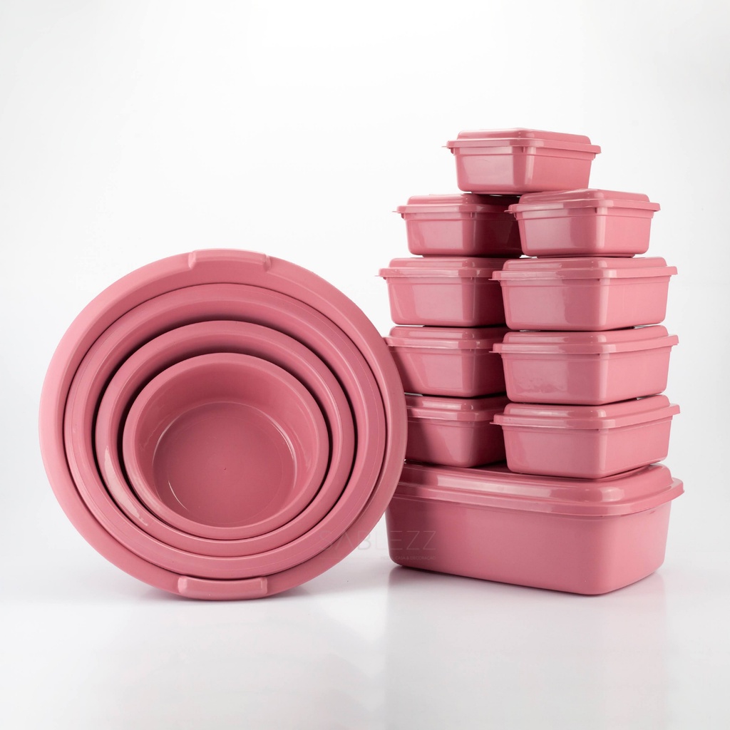 Kit Conjunto 4 Bacias Redonda Resistente + Jogo De 10 Potes Para Marmita Armazenar